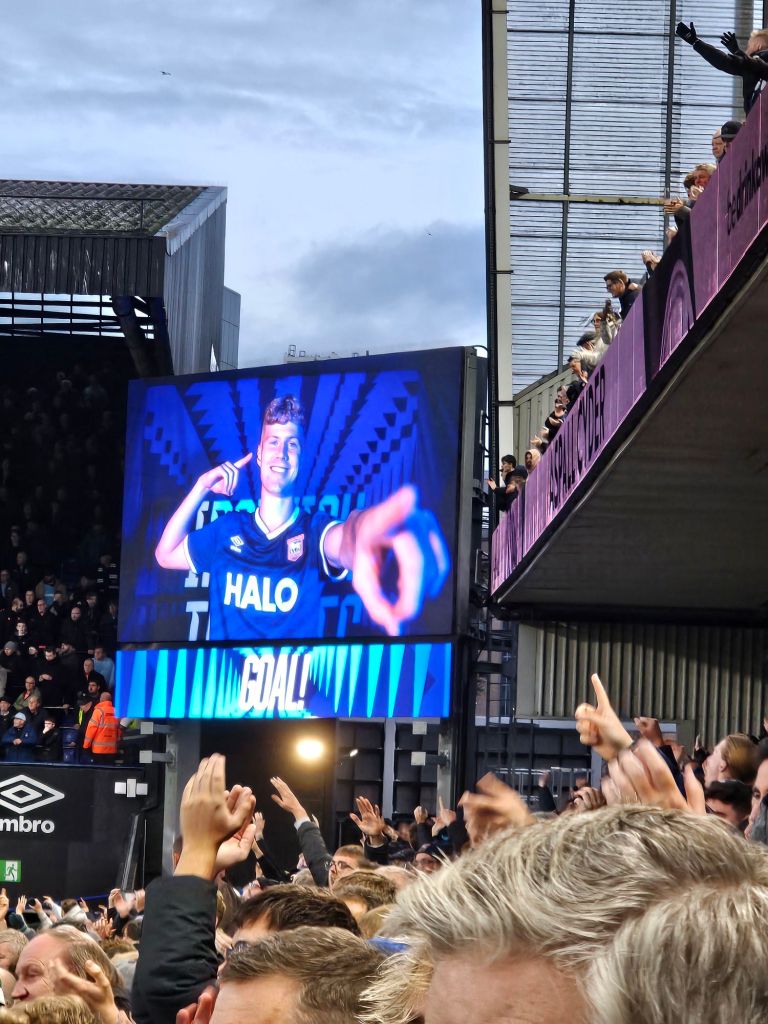 But with fifteen minutes left of normal time Town make three substitutions, replacing Cajuste with Taylor, and Eggy and Philogene with McAteer and Clarke, and Town look likely to score again, which with four minutes left they do as Clarke runs at goal, nips around a bumbling defender and flicks and rolls the ball past little Pierce Charles.