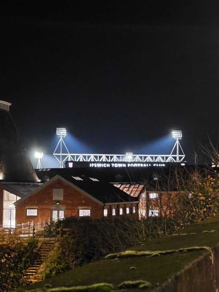 As has been the case for the past few games there are no queues at the turnstile to the Sir Alf Ramsey stand and after quick scan for weaponry by a smiling, bearded man of probable south Asian heritage I step through turnstile 61; I would have used the noted turnstile 62 but there was a bunch of late middle-aged blokes milling around it who didn’t seem to know what they were doing and I couldn’t be bothered to say “excuse me”. Moments later, standing in front of the stainless steel urinals decanting spent Suffolk Pride ( I don’t think the Solstice Porter can have made its way through yet) I hear the excitable young stadium announcer announcing the teams and by the time I’m shuffling past Pat from Clacton and Fiona to my seat I only get to shout “O’Shea” in the manner of a Frenchman at the Stade des Alpes in Grenoble or Stade Saint-Symphorien in Metz. Ever-present Phil who never misses a game is of course here too but not his son Elwood or the man from Stowmarket (Paul). The excitable young stadium announcer is today wearing a Santa hat as he presumably gets even more excited at the prospect of Christmas.