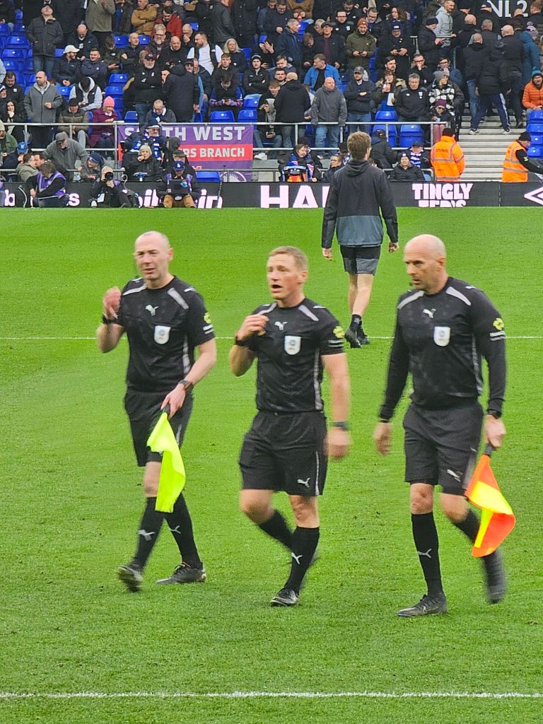 The half ends with Mr Busby once again placing himself centre stage as he penalises the Leicester goalkeeper for holding onto the ball for too long, something for which I don’t’ think I’ve seen a free kick awarded this century. Fiona has to explain to me that the punishment for this is now a corner kick and by the time she’s done this I’ve missed the chance to bawl “Come On You Blues” and as a result of this Town don’t score, again. A minute of added time is taken from all our futures to make up for the inadequacy of the past, but it makes no difference and with half-time Mr Busby is deservedly booed into the tunnel by those who haven’t already made a dash for the khazi.
