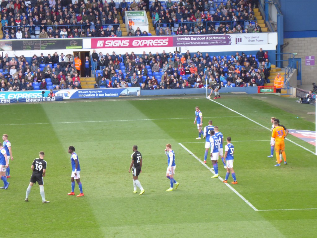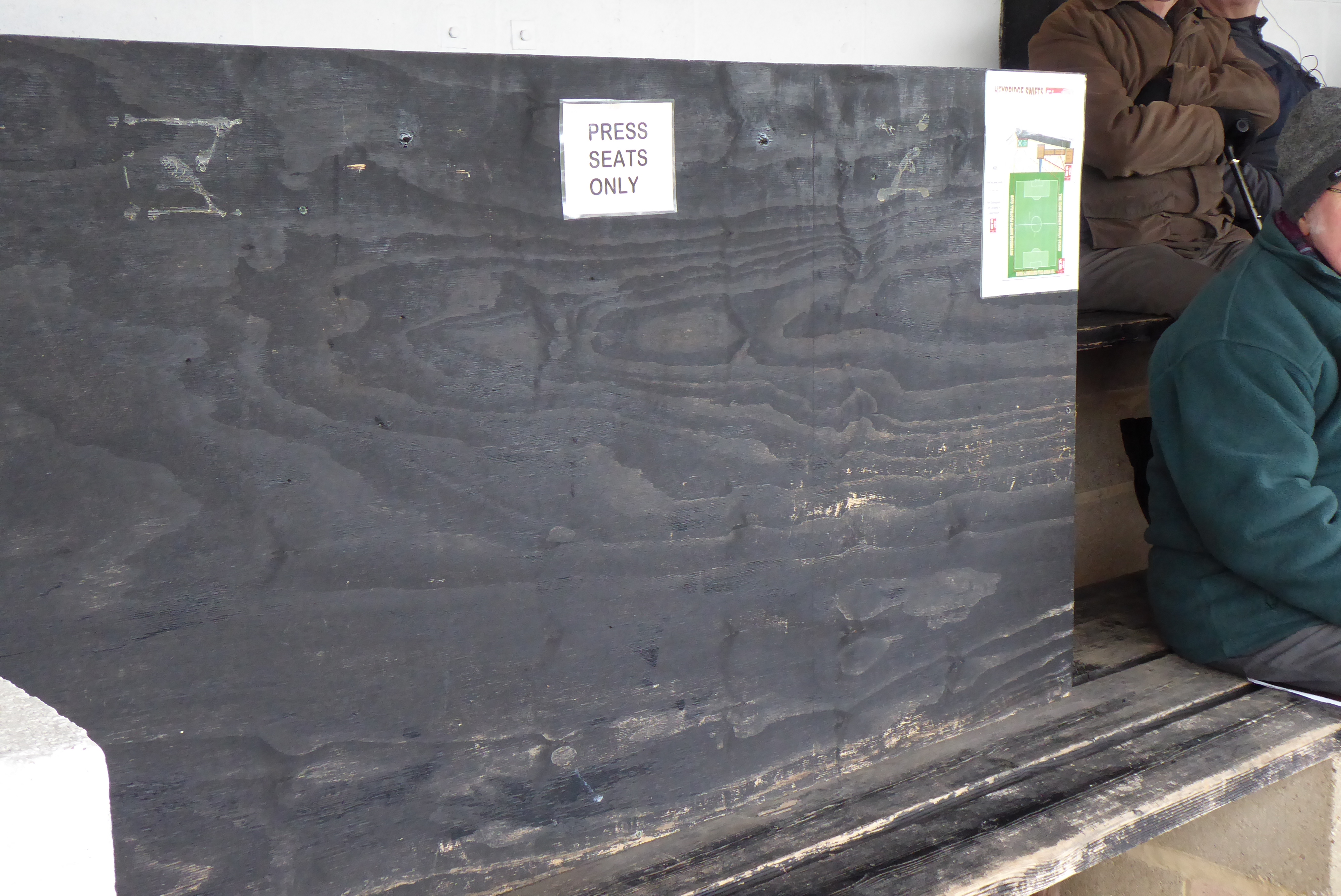 I sit again in the main stand and catch half a conversation behind me as a man explains to his friend about a holiday or short-break he’s been on. “They’re good hotels too, they suit me, know what I mean?” he says. I don’t know what he means, but then he wasn’t talking to me. It’s about twenty five past four and the Swifts win a free-kick and rather unexpectedly their number eight, the ostentatiously named Jack Adlington-Pile scores with what might be termed a Jack Adlington-Pile driver, a thundering direct shot worthy of winning any game. Unavoidably there is a bit more of a reaction to this goal as people voice a collective “Cor!”. Grays are marshalled well by their imposing captain Stanley Muguo but they can’t get back in to the game and it’s the Swifts who come closest to scoring again as another free-kick, this time from number four Nicholas Brown defies the laws of physics by hitting the inside of a post and re-bounding out.