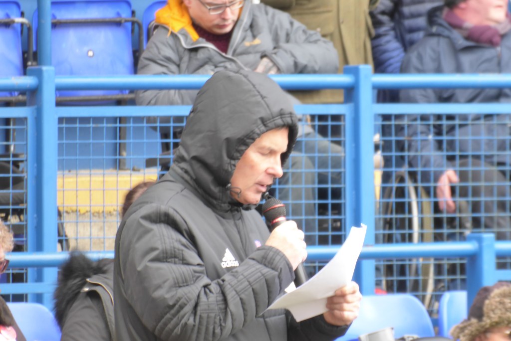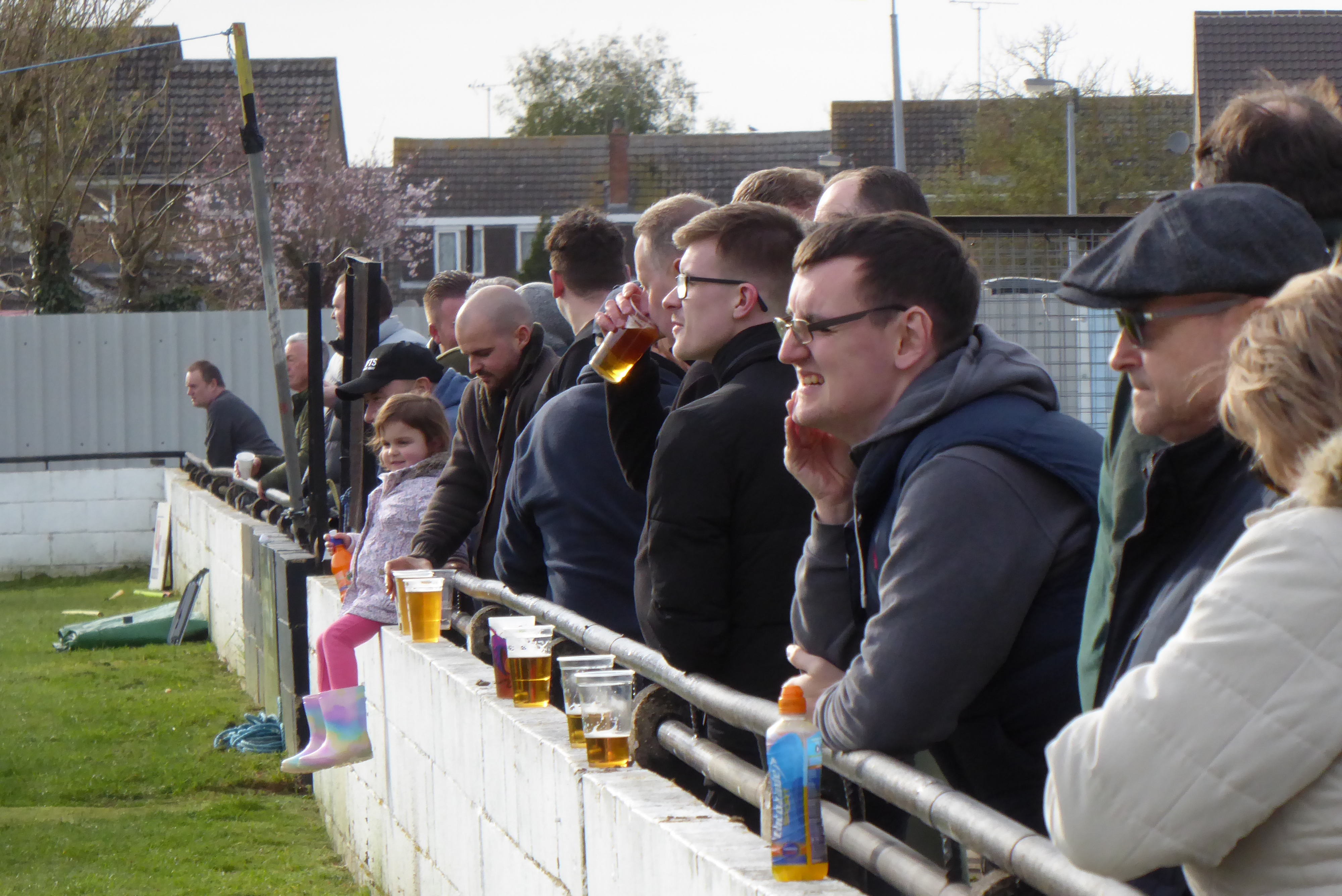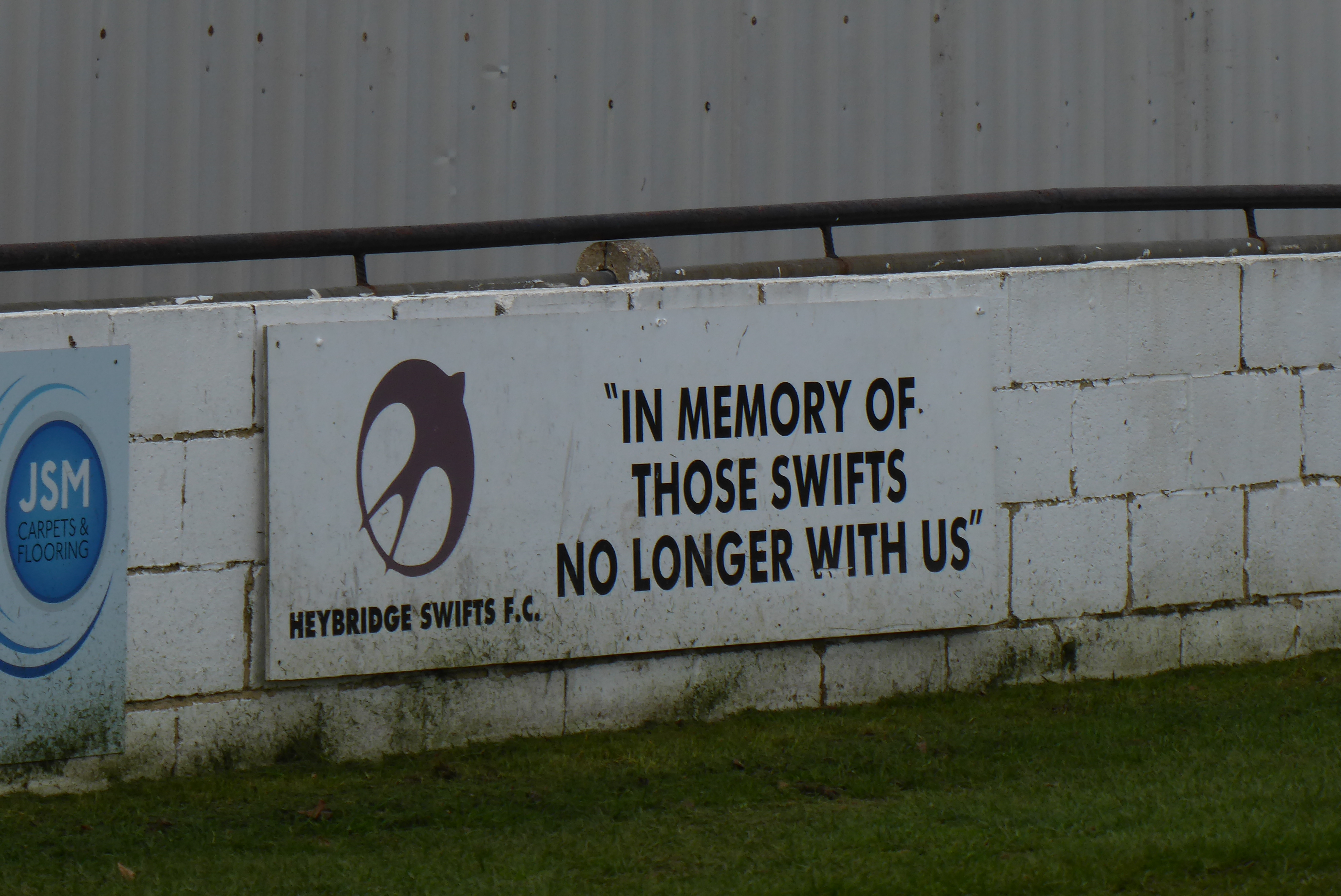 It is five past four and with the start of the second-half I take up a place on one of the two rows of wooden benches in the Mick Gibson Family Stand. There don’t seem to be any families in the stand although the rest of the ground is well peopled with mums and dads and children of all ages. I wonder who Mick Gibson is or was and if the stand is just for his family. The Swifts seem re-invigorated by their half-time tea and the words of Julian Dicks. Firstly Manny Osei-Owusi gets wide and plays the ball back only for number four Nicholas Brown to skew his shot embarrassingly wide. But minutes later a corner is won, the ball is sent towards goal and repulsed, but only as far as Toib Adeyemi who is on hand to send it into the goal from close range and the scores are level at one each. The crowd cheers, although not as much as I thought they would, but then lunchtime and afternoon drinking does make you feel a little sluggish.