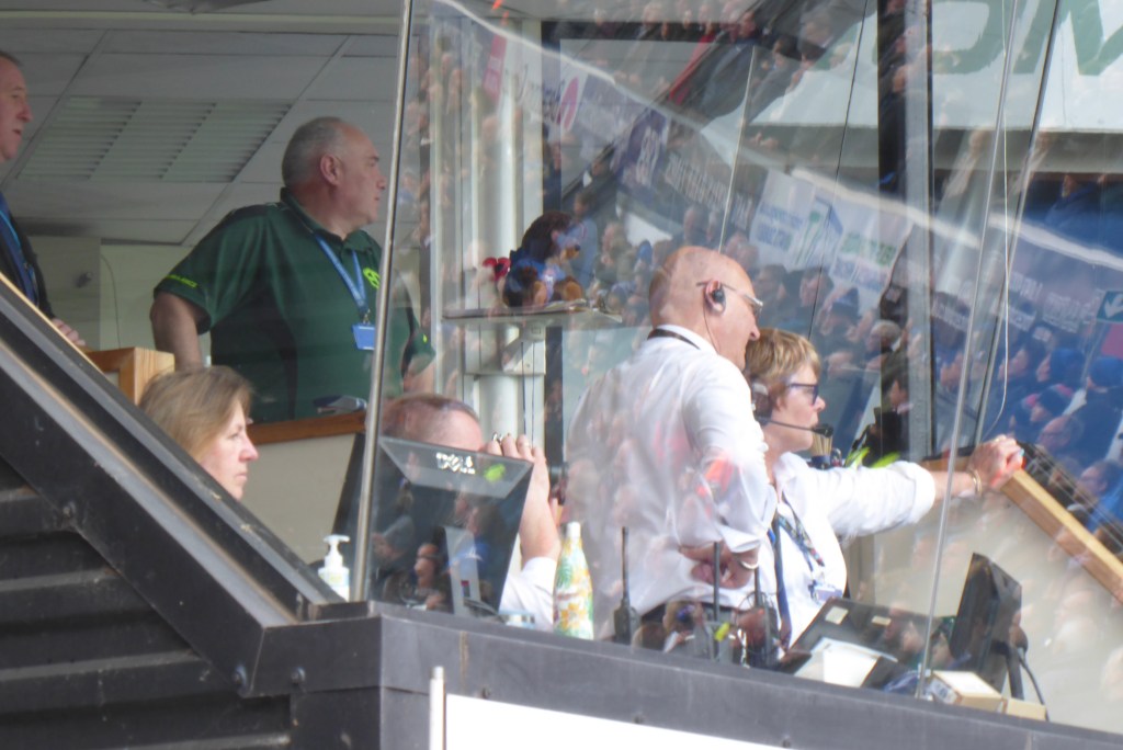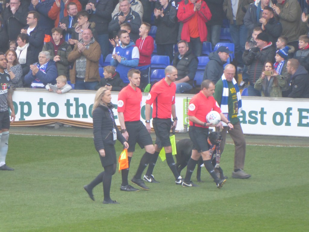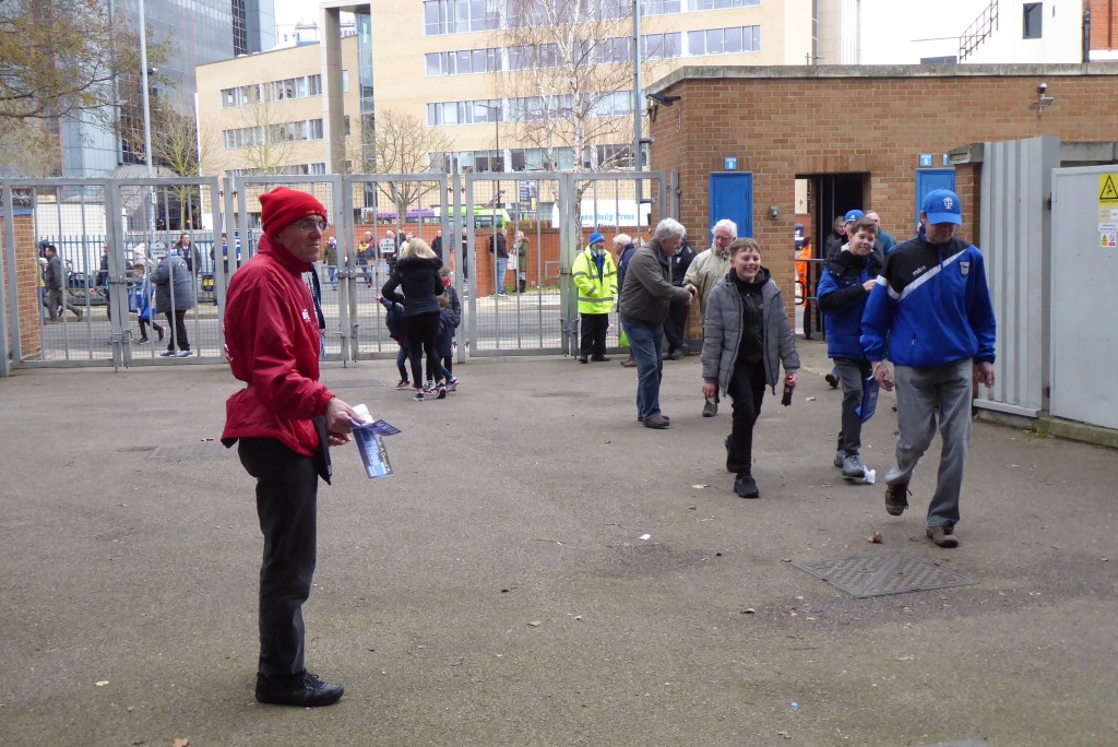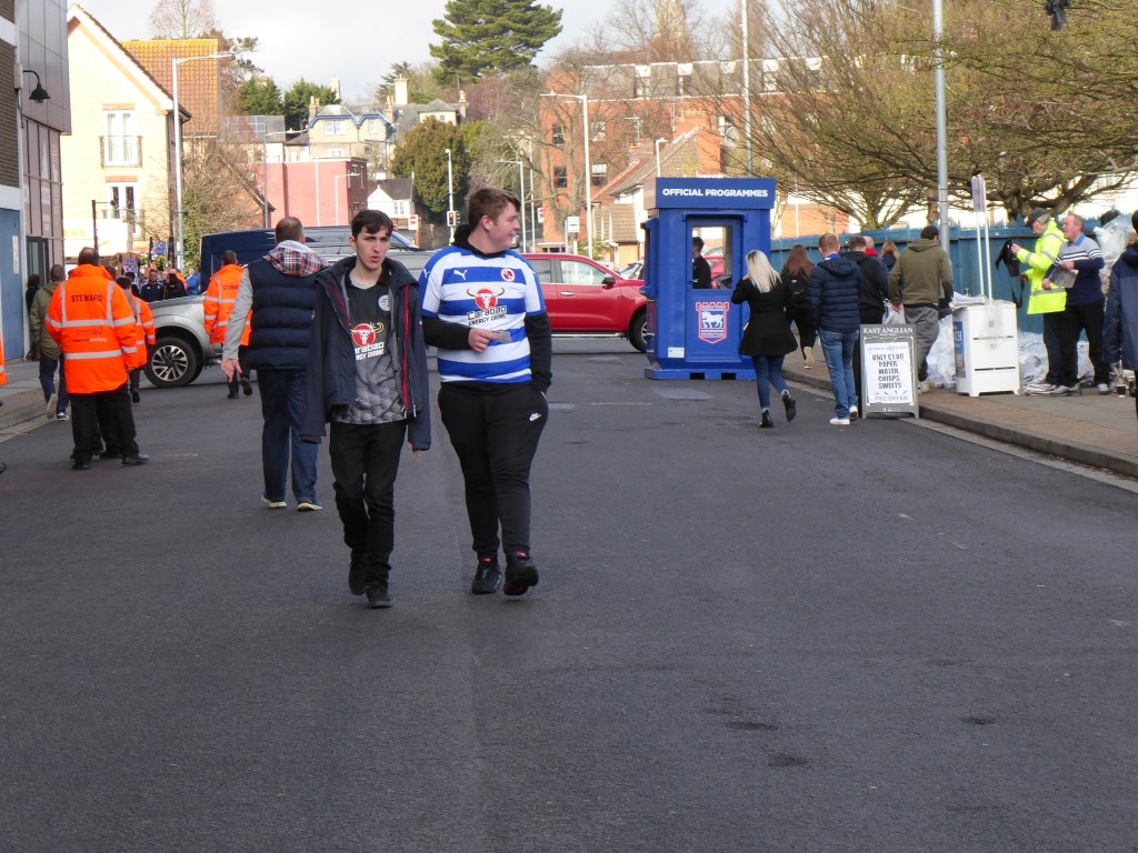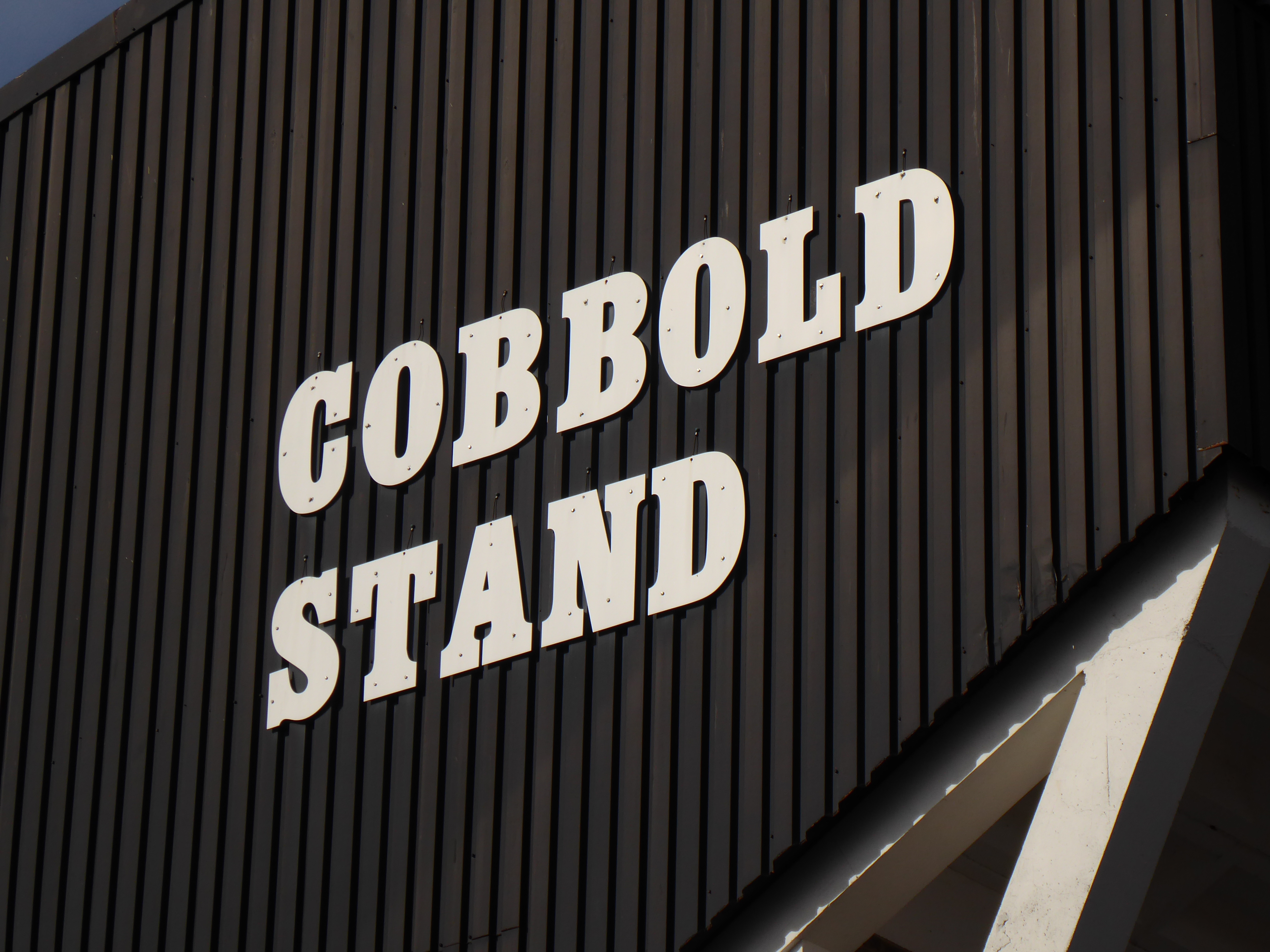 It is five past four and with the start of the second-half I take up a place on one of the two rows of wooden benches in the Mick Gibson Family Stand. There don’t seem to be any families in the stand although the rest of the ground is well peopled with mums and dads and children of all ages. I wonder who Mick Gibson is or was and if the stand is just for his family. The Swifts seem re-invigorated by their half-time tea and the words of Julian Dicks. Firstly Manny Osei-Owusi gets wide and plays the ball back only for number four Nicholas Brown to skew his shot embarrassingly wide. But minutes later a corner is won, the ball is sent towards goal and repulsed, but only as far as Toib Adeyemi who is on hand to send it into the goal from close range and the scores are level at one each. The crowd cheers, although not as much as I thought they would, but then lunchtime and afternoon drinking does make you feel a little sluggish.