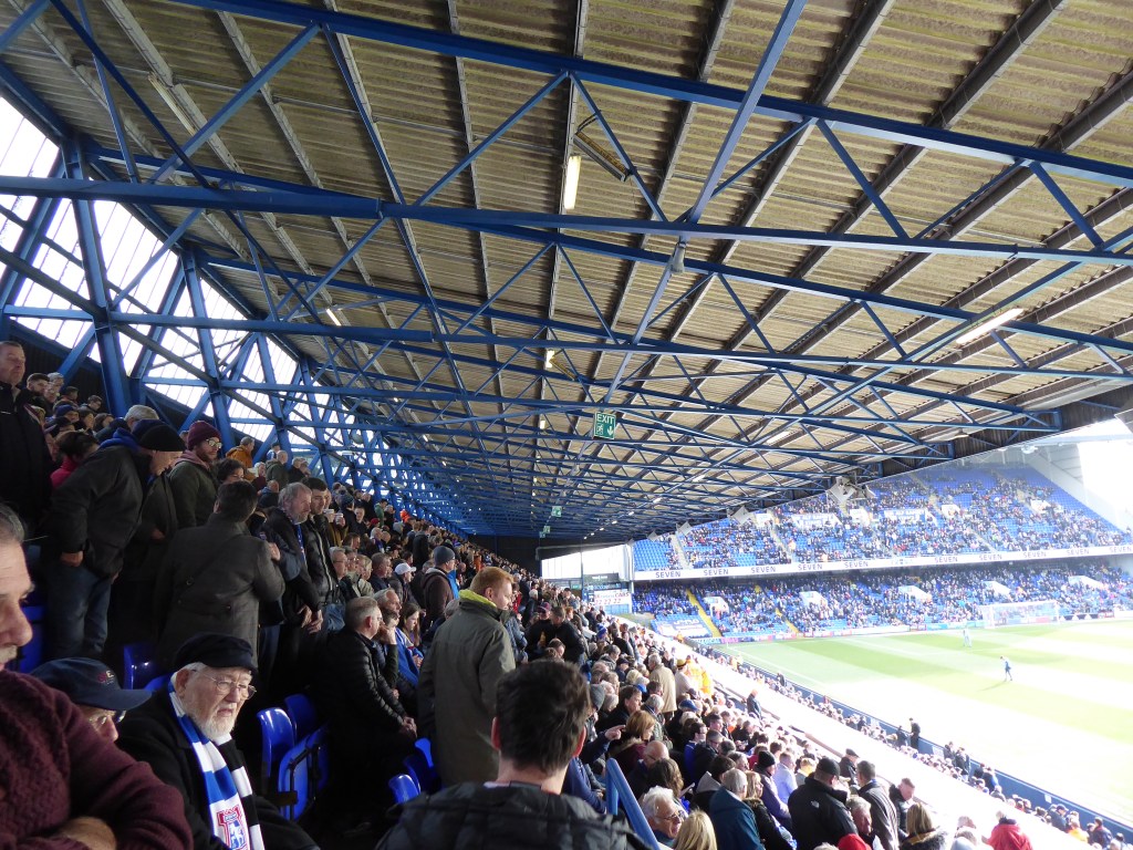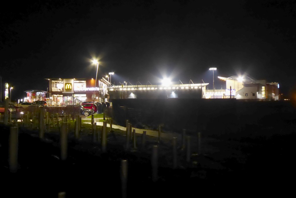 I make the same circuit of the ground that I made in the first-half enjoying the different back drops to the action on the field; bare trees on one side, 1960’s suburban houses on the other and blue skies and wispy cloud above. The sun is now shining through the cloud and shadows of trees and the Mick Gibson Family Stand play across the pitch. On the opposite side of the ground spectators shadows play against the corrugated metal boundary fence; it’s beautiful in a way that a football match inside a large stadium never can be.