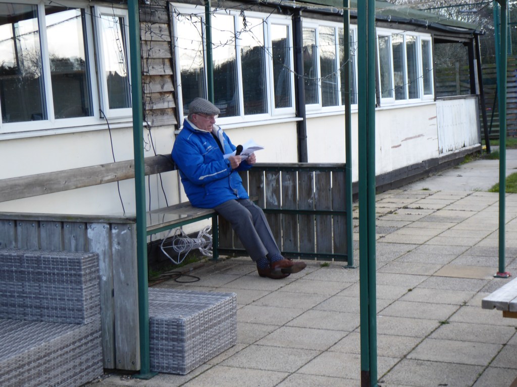 A long line of home supporters file from the clubhouse to the far end of the ground to stand behind the goal into which the Swifts are hoping to score. The home team dominate the opening stages and have the first shot as the ball rebounds to their number seven, the top-notch wearing Elliott Ronto, whose shot is well saved by the Grays ‘keeper, the beautifully named Clark Bogard. Although he sounds like a matinee idol, Clark is a large man who clearly does not possess a ‘six-pack’ and from a distance his all yellow kit would, for a short-sighted person, perhaps give the impression of a naked Homer Simpson. Predictably the ‘wit’ of the home supporters is soon in evidence. “Come on Fatty” shouts an estuarine voice as Bogard lingers over a goal kick. There is a rowdy atmosphere on the shallow, covered terrace and two lads self-consciously bang a couple of drums, but not enough to really annoy anyone. “ E’s only ‘ere for the after match meal” shouts someone else at the ‘keeper. “The food’s good here” responds Clark with a greedy expression, admirably entering into the fun. “Ello princess” shouts a pre-pubescent lad following a strangely different tack. A man in his sixties shuffles through the stand selling half-time draw tickets. “Afternoon Steve, Bob” he says to a couple of regulars. I buy a strip of tickets, numbers 416 to 420 for a pound, I am not destined to win.