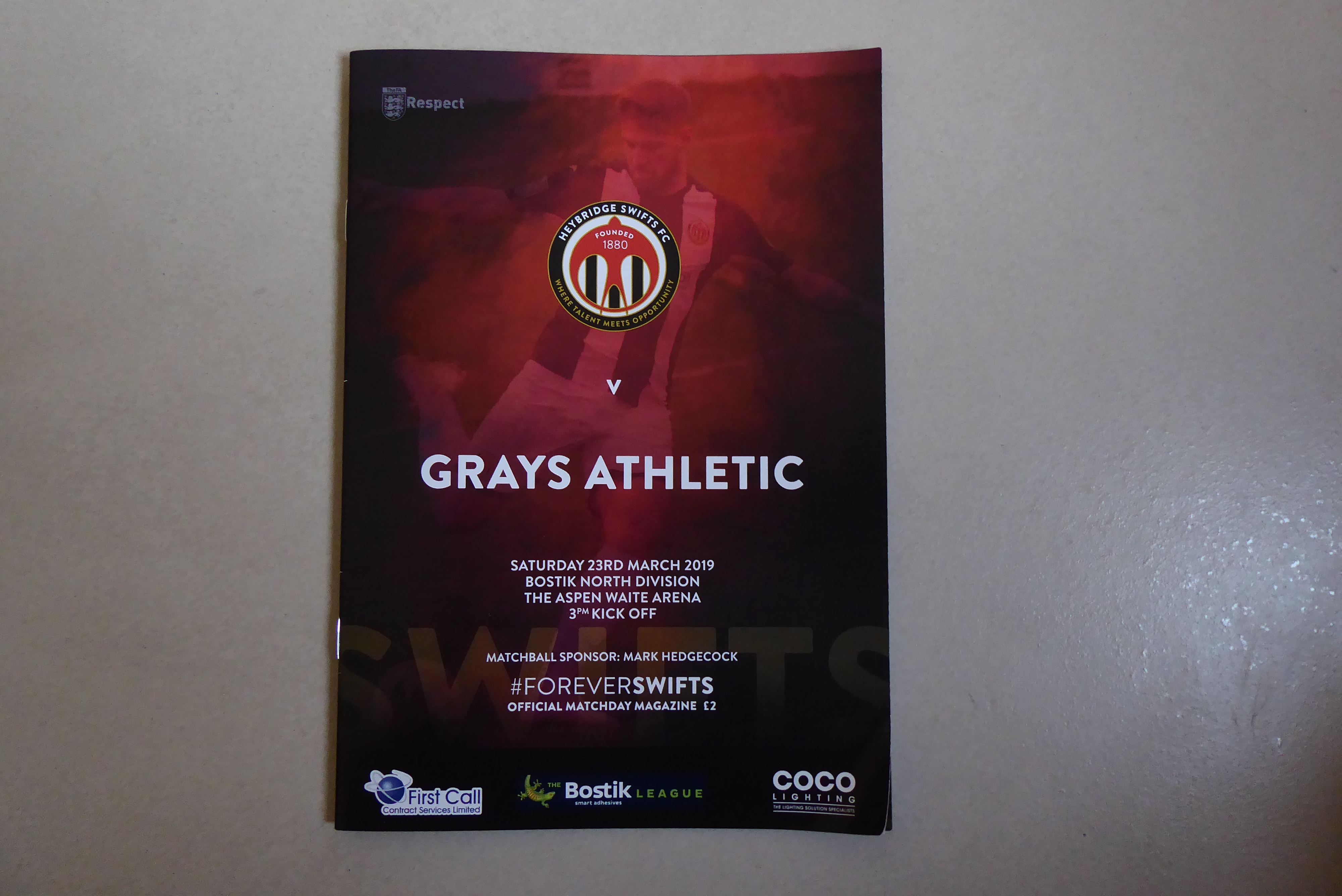 As the match heads towards its conclusion Adlington-Pile and Luke Wilson get to see Mr Hallam’s yellow card, as disappointingly they attempt to hang on to the lead by foul means as well as fair. Whilst the match remains interesting, Grays are just not good enough to score again and the fact that although only four places separate the teams in the league table, Swifts have nineteen, and now twenty-two more points tells a story.