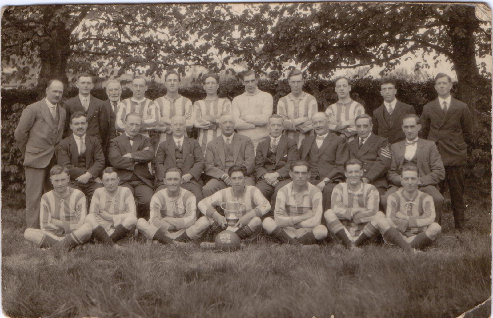 The Swifts kick-off towards the First Call Community Stand and the River Blackwater and Maldon beyond; they wear black and white striped shirts with white shorts and socks, a colour scheme no doubt inspired by the colours of Apus Apus, the Swift, although seen up close Swifts are actually dark brown. Grays Athletic meanwhile are in all blue with white sleeves and look a bit like Ipswich Town playing away to a team that wears white shorts; they are playing in the direction of the club house and Tiptree. As much as Grays might look like my team Ipswich Town and even though the legendary Fabian Wilnis played for them (33 times in 2008-09 season) I decide to support Heybridge Swifts today; Swifts are my favourite birds because they remind me of warm summer evenings, and Swifts is such a great if disappointingly rare name for a football club. I grew up in Shotley in Suffolk where the village team, now known as Shotley Rose after the village pub, were originally the Shotley Swifts; in the 1920’s my grandfather was on the committee and I have a much-prized photo of him with the team posing with a trophy.