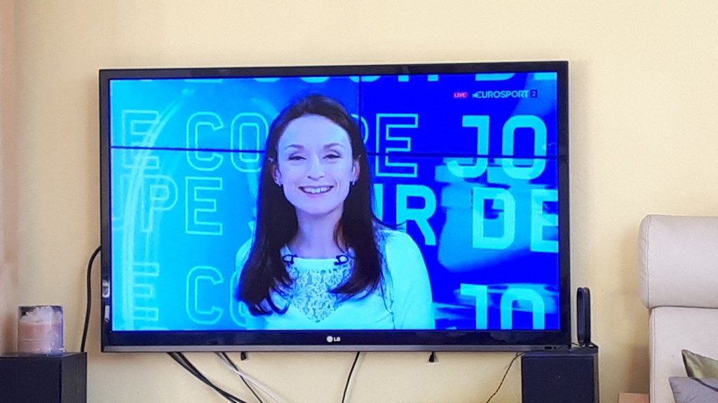 The programme is presented by the personable Gaëlle Millon who certainly earns her money on Coupe de France weekends as she presents the matches at lunchtime, in the afternoon and on into the early evening with a 5 o’clock kick-off and then the later evening match at 8 o’clock. It doesn’t stop on Saturday evening for notre Gaëlle either, as on Sunday she will then present the afternoon games and an evening match and then possibly another evening game on Monday too. Gaëlle is perched on a high chair or stool behind a small desk in a studio which is probably in the headquarters of Eurosport in the Paris suburb if Issy-les-Moulineaux, which incidentally is only a fifteen minute walk from Parc des Princes, home of Paris Saint Germain.