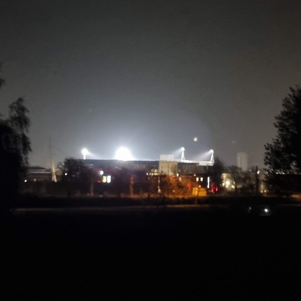 At the Arboretum, or Arbor House, I purchase a pint of Mauldon’s Suffolk Pride (£3.90) using my bank card and sit in the garden alone. I take my programme from my jacket pocket expecting to just ‘flick through’ it, but to my surprise I end up actually reading two quite interesting pieces about Sone Aluko’s experiences playing for Nigeria and how Idris El Mizouni copes with being a professional sportsman during Ramadan. After a half an hour of beer and contemplation I head back to Portman Road beneath the setting sun shining through pearlescent clouds. Turnstile 61 is my favoured portal tonight, it was a choice between that and No 59. The pleasant lady turnstile operator smiles me into the ground and I make for the gents where I enjoy a tinny rendition of Edward Ebenezer Jeremiah Brown before I wash my hands. Up in the stand, ever-present Phil who never misses a game is concealed within a blue hoody and Pat from Clacton is talking to the bloke who sits to my left and I think is from Stowmarket; they’re talking about how cold it is this evening and indeed a lazy East wind is blowing across the bottom tier of the Sir Alf Ramsey stand, causing me to raise my collar and do up the top button of my coat. Fiona arrives, returned from her cruise and other excursions.