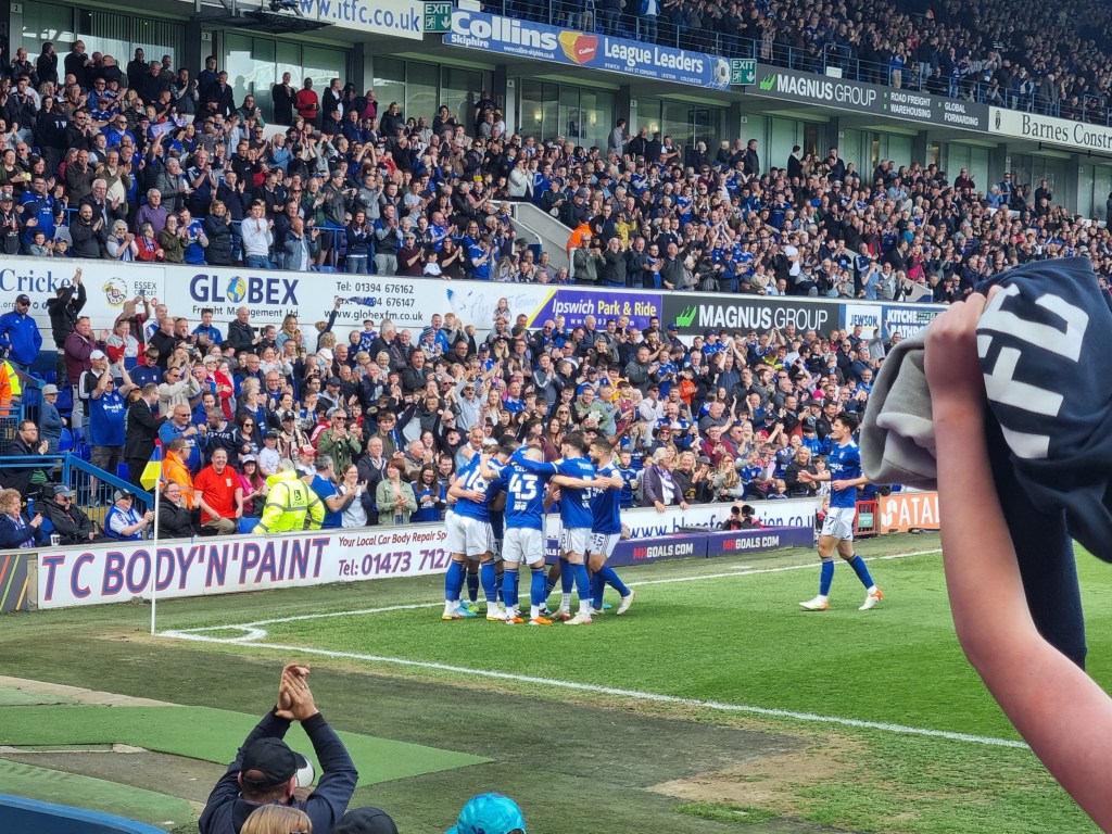 It’s the fifth minute and another clever pass from Conor Chaplin is meant to put Wes Burns through but he hasn’t reacted, it’s the third time already that Mr Burns has not been his usual self. A minute later and Bersant Celina does a few step overs before passing square to Tyreeq Bakinson who allows the ball to run across in front of him, looks up and then strikes it firmly into the top right- hand corner of the Charlton goal and Town lead 1-0.  As I remark to Pat from Clacton, Bakinson has been unlucky with a few shots from outside the penalty area in previous games, so it was a goal that had been coming for a while, although happily today we’ve only had to wait six minutes.