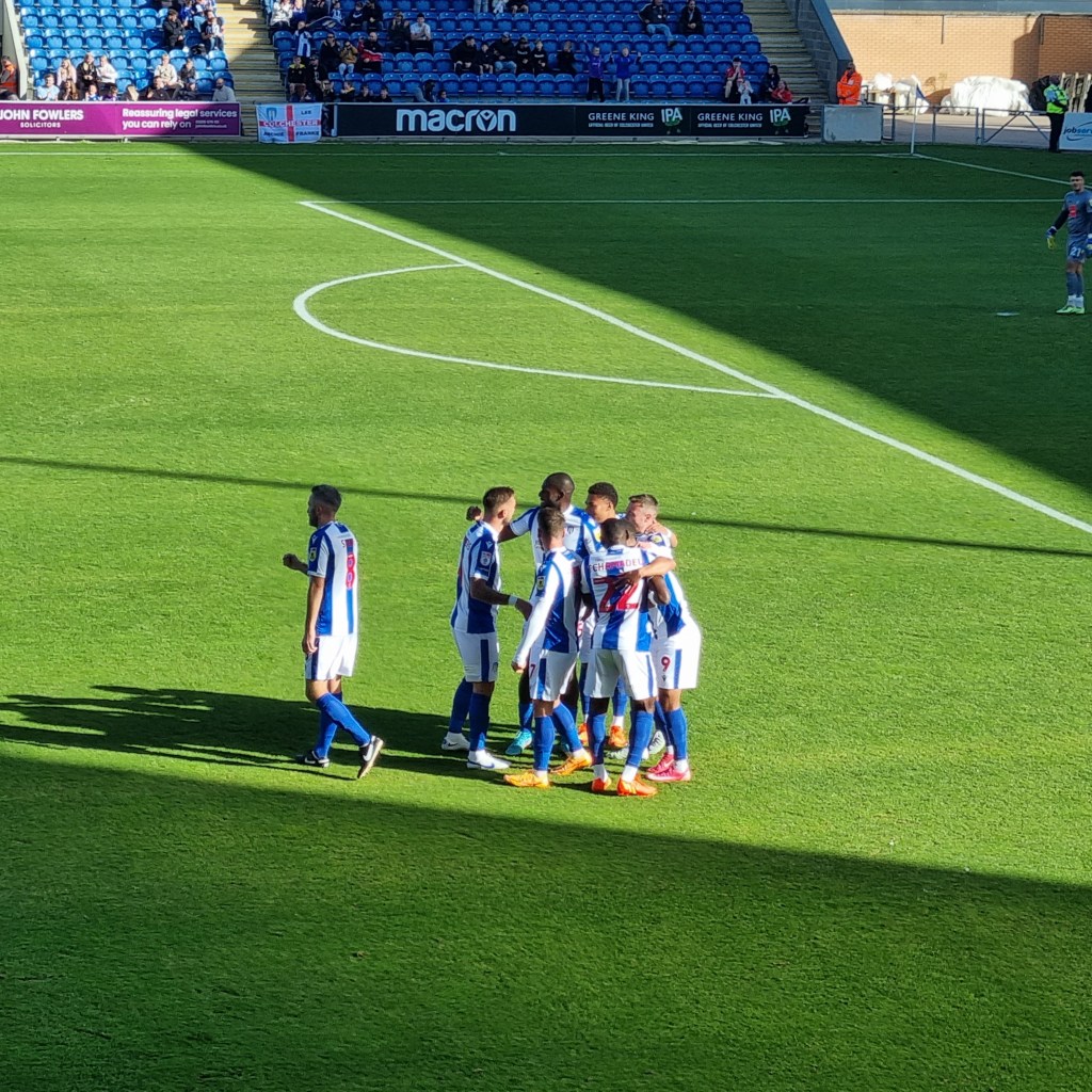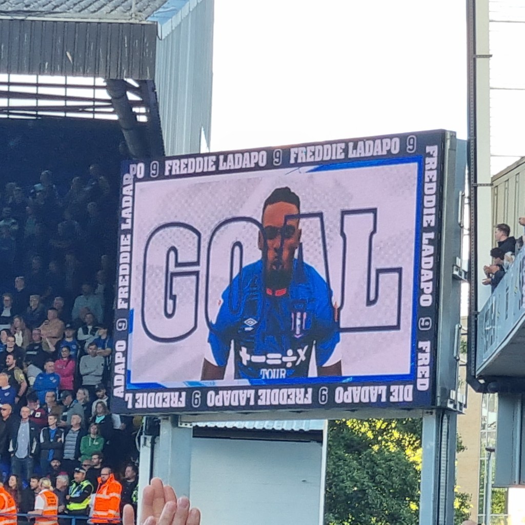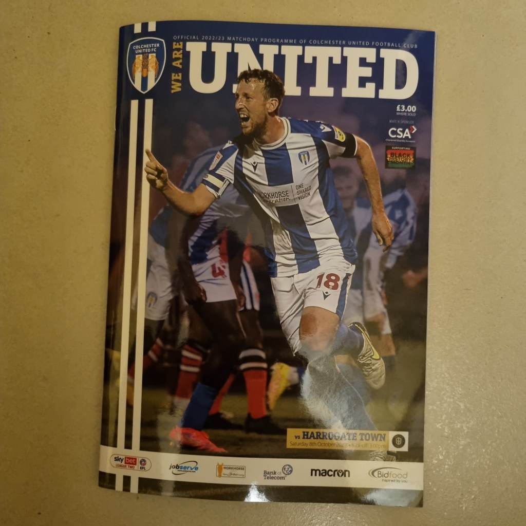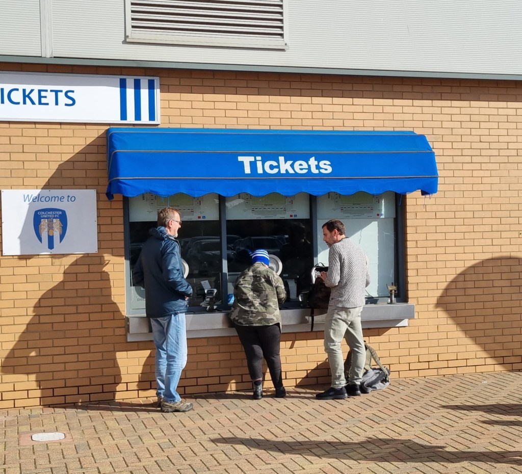 A young bloke with a beard sits himself down in Pat from Clacton’s seat. I give him a look like Paddington Bear. “Is this seat free” he asks a little nervously. “Well, there’s no one sitting there tonight” I tell him in a voice that’s as close as I can get to sounding like a Suffolk Johnny Cash. He smiles broadly. I think I’ve put him at his ease. On the pitch the play is frenetic, with both teams trying to play neat, passing football but frequently interrupting one another. Sam Morsy is booked after just ten minutes for a foul on the wonderfully named Lewis Dobbin. Ipswich have more success at getting close to their opponents’ goal and win three early corners, George Edmundson heads wide and Tyreece John-Jules clearly dives in the penalty area having won a few free-kicks already elsewhere. I thought it was an obvious dive; the way he had already established eye-contact with referee as he fell gave it away, a bit like a Labrador staring at you as you eat your dinner. He should be told to leave any desire to cheat in North London where it belongs, or Kieran McKenna will write to his mum.