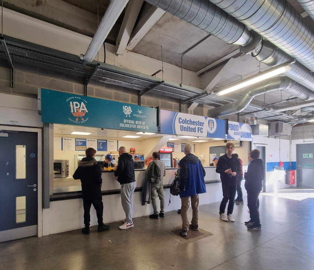 When Mick arrives he buys us both pints of Mauldon’s Suffolk Pride plus a packet of Fairfield Farms cheese and onion flavour crisps, which pleasingly have only travelled from Wormingford near Colchester, some 33 kilometres away. Our conversation this evening is punctuated with laughter as we discuss burials and the disposal of people’s ashes and how people seem to have become strangely sentimental lately. With kick-off not until 8 o’clock this evening, courtesy of Sky TV’s broadcasting schedule, we have more time than usual to laugh about such things and don’t notice everyone else leaving for the match and it’s closer to kick-off than usual when we eventually leave, making a sharp exit through the back gate.