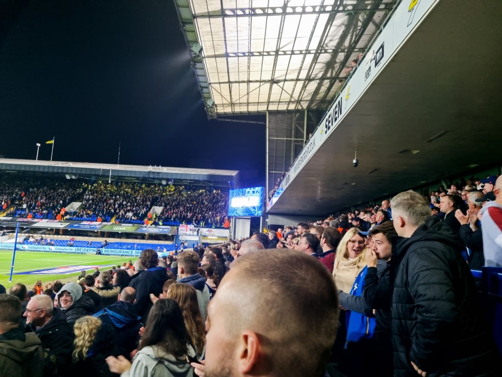 I have been in the office, where I now work just one day a week, since eight o’clock this morning and it’s now half past four in the afternoon. I have wasted enough of my day just existing and accumulating the means to continue my shallow, feckless Western lifestyle, now it’s time to live and be shallow and feckless. I check my mobile telephone. At 16:12 I received a message from Pat from Clacton. Pat tells me she was joking last week when she told me she would not be at the match tonight, but then proceeds to tell me she won’t be at the match tonight. Pat says she’s still suffering the after-effects of Covid, which apparently includes heavy breathing. As much as watching a football match with a 1968 vintage Jane Birkin appeals to me, it’s probably best for Pat that she stays in Clacton tonight. The good news however is that Pat won £51.25 playing whist whilst on holiday in Great Yarmouth, but the real point of the message, I think, is to ask me to photograph ever-present Phil who never misses a game when he celebrates Town having scored a goal. Pat from Clacton always photographs ever-present Phil when he celebrates a Town goal at Portman Road, it’s a ritual like a state funeral or pancakes on Shrove Tuesday.