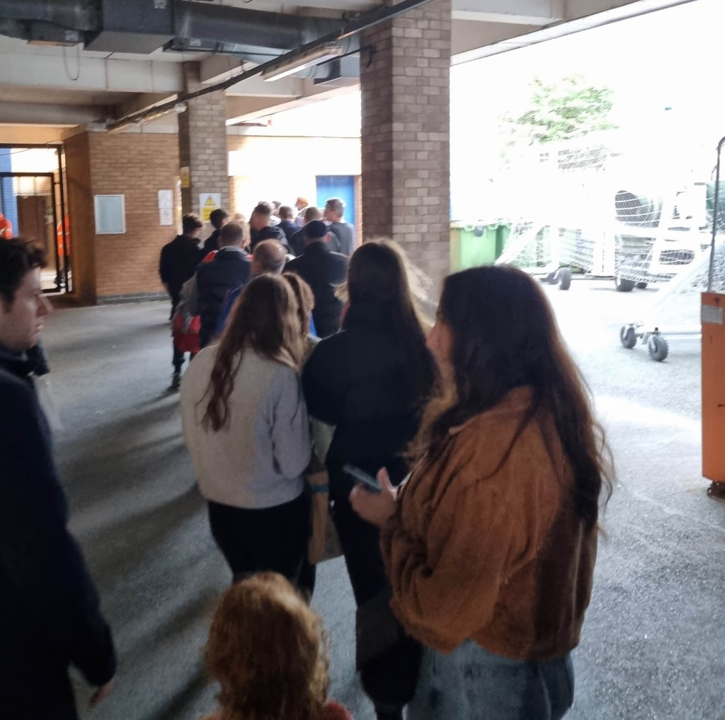 This is how things should be and I can only wonder why 9,000 voices aren’t singing “Wemb-er-ley, Wemb-er-ley, we’re the famous Ipswich town and we’re going to Wemb-er-ley”, but they’re not. With the half-time whistle I descend into the bowels of the stand to drain off some Woodforde’s beer whist Mick queues for a vegan pie which he is impressed to find comes with a wooden spork.