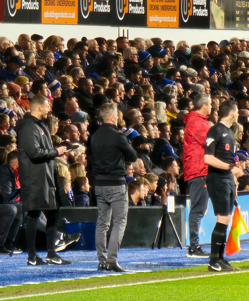 The second half is not as entertaining as the first and with twenty minute to go Keiran Mckenna, who must be freezing in what my friend Pete’s mum would have called “just a shorty-arsed jacket”, commits to a mass substitution as Marcus Harness, Omari Hutchison, Dane Scarlett and Kayden Jackson usurp Nathan Broadhead, Wes Burns, George Hirst and Conor Chaplin. Moments later Murphy tells us that there are 27,702 of us here tonight of whom 1,270 are from Millwall, and no one likes them. Murphy thanks us very much for our support, but unusually applies no adjectives to it, which is a good thing.