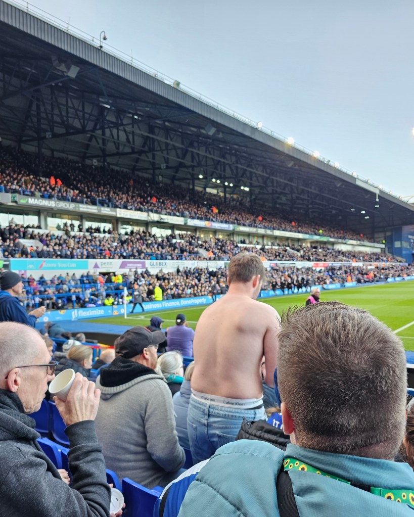 I’m beginning to think it’s been a while since I saw a goal, but as half-time beckons Wes Burns crosses from the right and Cameron Burgess moves into space in front of the penalty area. Everyone wants him to shoot thinking that he’s been possessed by the spirit of Bobby Charlton, but wisely he lays the ball off to an overlapping Leif Davis whose cross is met full on by Nathan Broadhead, who lives up to his name with a very straight and well directed header into the far corner of the Millwall goal net. Town lead 3-0 and every goal has been a sight to commit to memory and treasure. There is not a hint of irony tonight as we all sing “Ipswich Town, Ipswich Town FC, the finest football team the world has ever seen”. Three minutes of added on time are surprisingly not enough to give Town a fourth goal, but the applause and appreciation are not diminished by this as the teams leave for their half-time break and I make the short journey to the front of the stand to chat with Ray and his grandson Harrison, who is much taken with ‘new’ Beatles single, which I can’t remember the name of. I tell him it’s not as good as their old stuff, so everything they ever did before really, even Yellow Submarine. I haven’t seen Ray for several weeks and I learn that he has been on two back to back cruises and not on the Orwell Lady either, but down to Madeira and southern Spain.