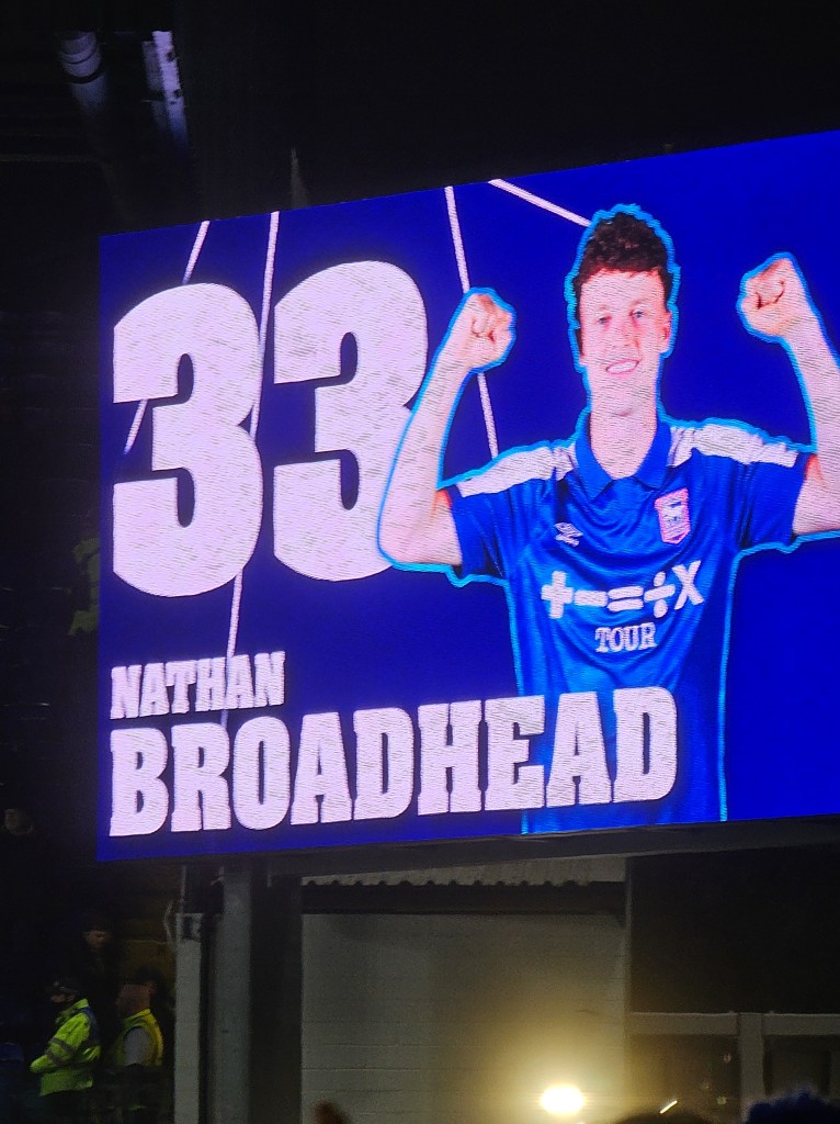 With a quarter of the game gone for ever, except on Sky tv highlights, Massimo Luongo is the first player to see the yellow card of referee Mr Bramall, apparently because of a supposed foul. Wes Burns makes things a bit better with a shot that hits a post that almost lives up to the description “cannons off”. I notice that I am being dripped on by droplets of moisture condensing on the cold steel girders of the Sir Alf Ramsey Stand roof, and the North stand deliver a funereal version of “When the Town go marching in” before upping the tempo for a brief encore.