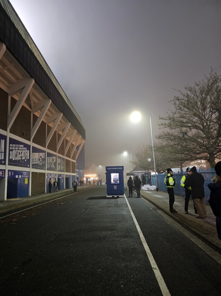 As the cold begins to get to grips with my woollen socks the sound of the final whistle can’t come soon enough. Jack Taylor replaces Massimo Luongo with a minute of normal time left and, we quickly learn there will be a mercifully brief four minutes of added on time. Man of the Match, Murphy tells us is Conor Chaplin, which draws an impressively uninterested response from the crowd and the final whistle is met with a sharp exit into the fog on all sides of the ground.