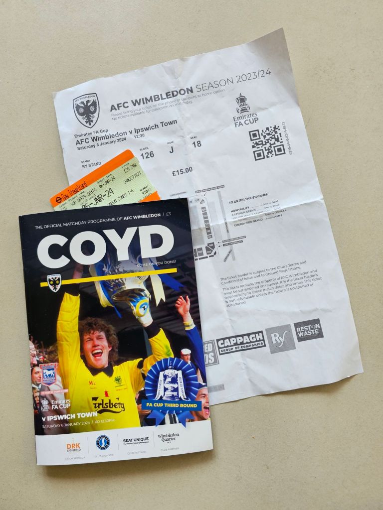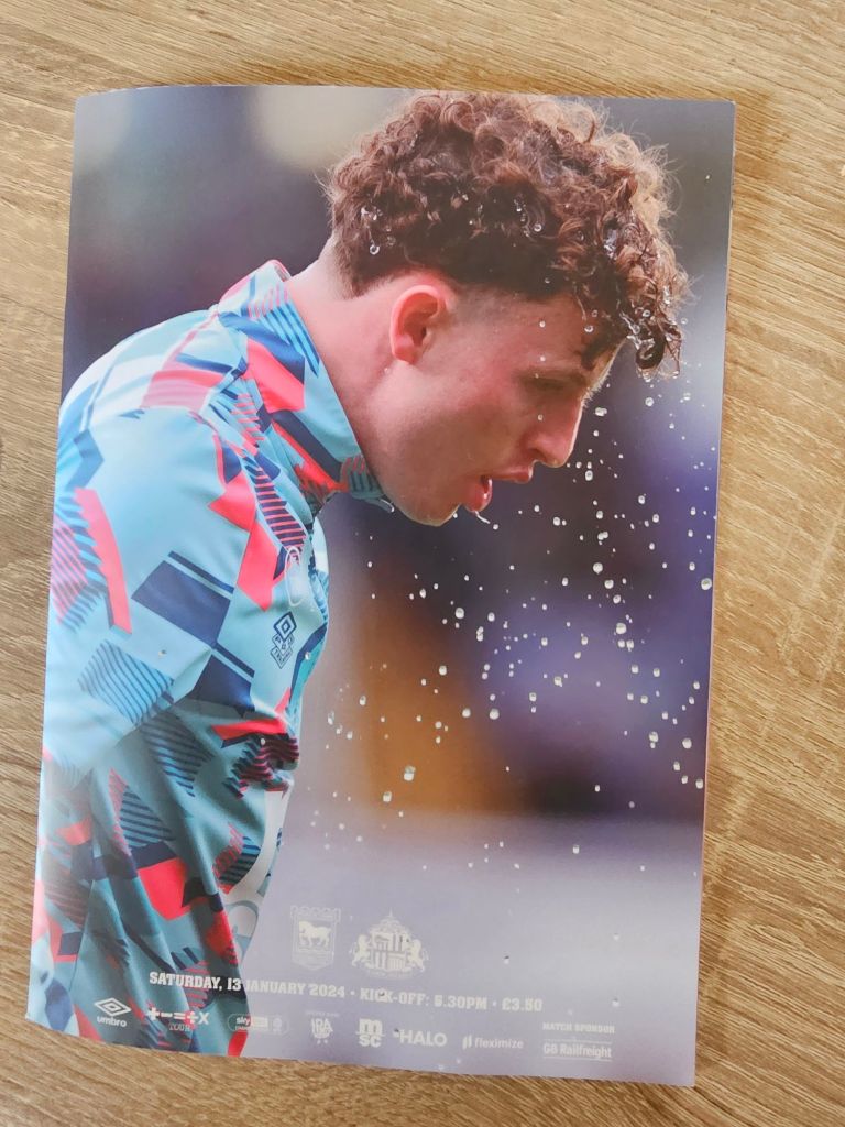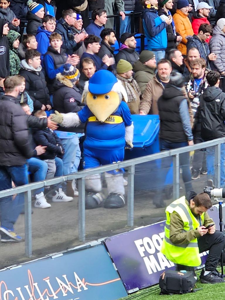 We park up and stroll across Gippeswyk Park under what approximates to clear, azure skies in Suffolk in winter. The roads were busy, but the streets are not and in Constantine Road there is still the odd parked car. We pass by the entrance to the fanzone and I ask Gary if he’d like me to take his photo with Bluey, Ipswich Town’s Suffolk Punch mascot. He wouldn’t, but was going to ask me the same thing, and I am tempted because it would make a fine addition to my collection, which sees either me or my wife Paulene in the company of Ri-Ri the Nantes canary, Bouba the Monaco elephant and Merlux the Lorient hake, amongst others. Instead, Gary buys me a programme (£3.00) by way of payment in lieu, for my electricity and chauffeur fees. Turning away from the programme booth, Gary attempts to hand the programme to the man in the queue behind him, thinking it is me, but quickly regains his bearings and we amble on towards the ‘the Arb’, after I have tucked the programme away in my coat pocket.