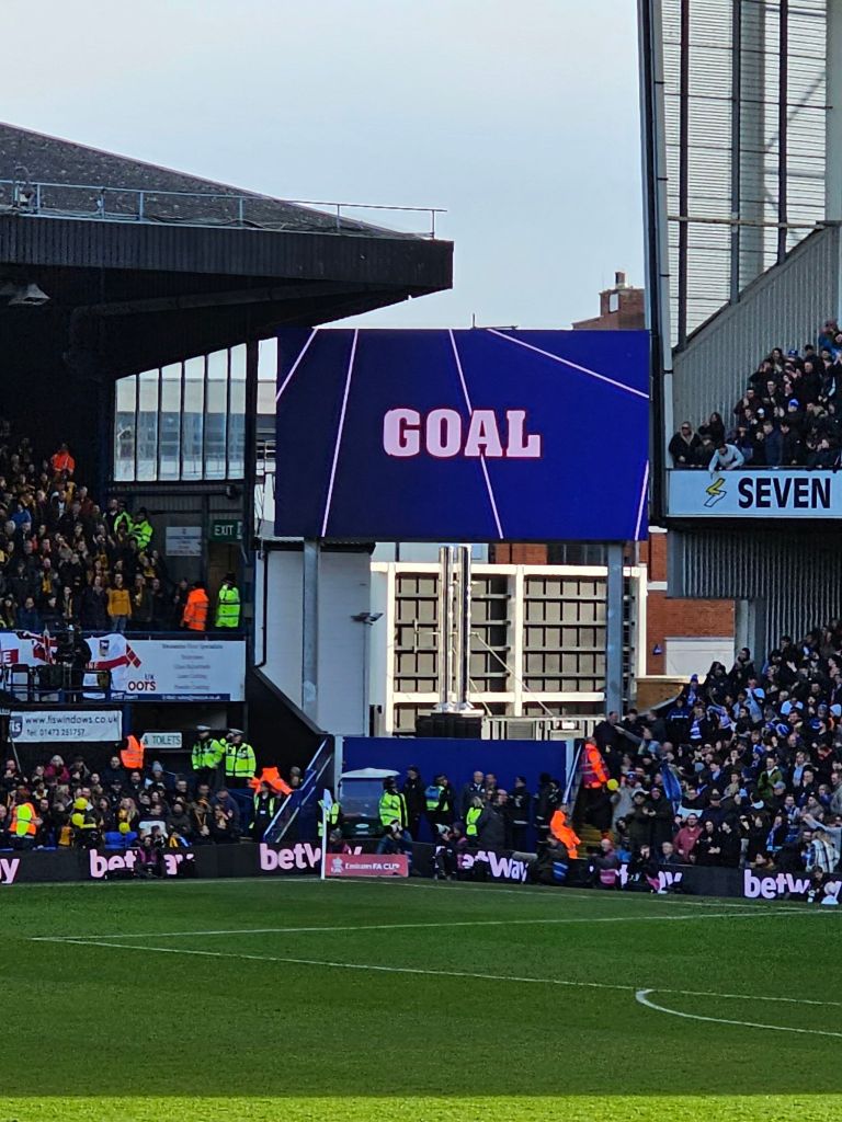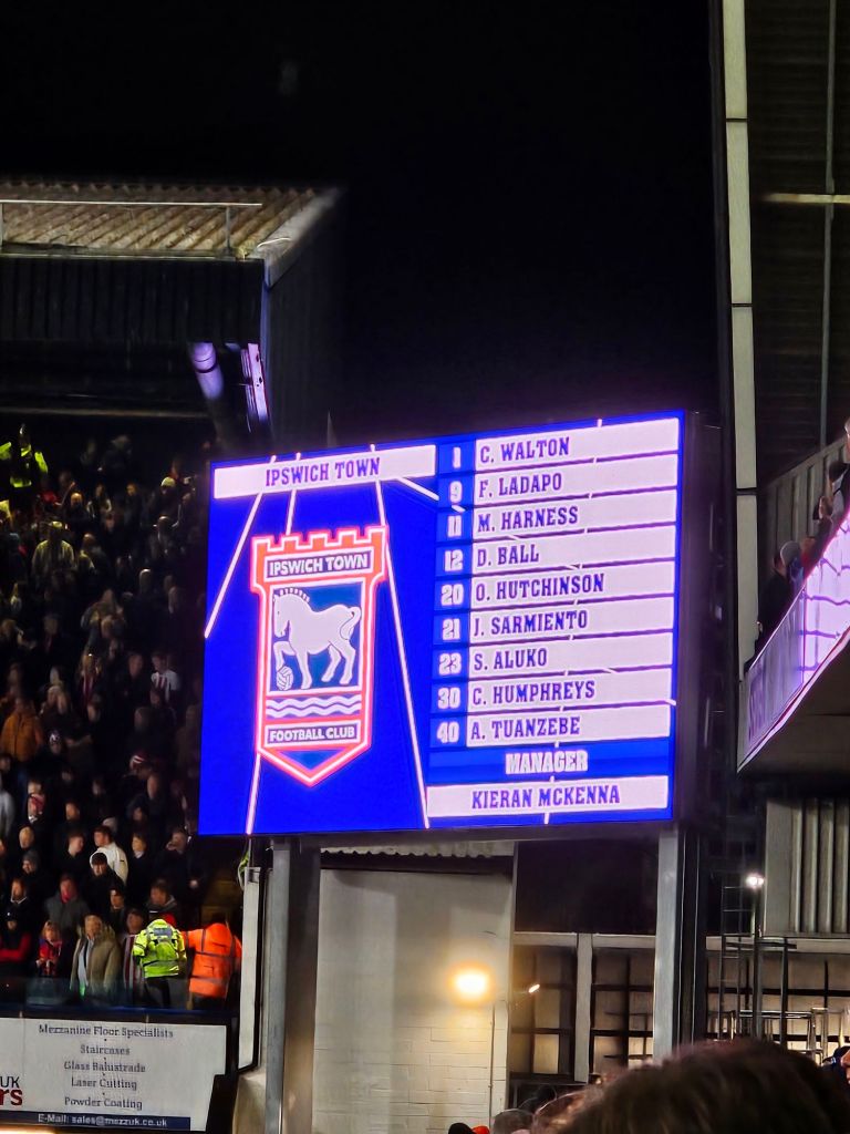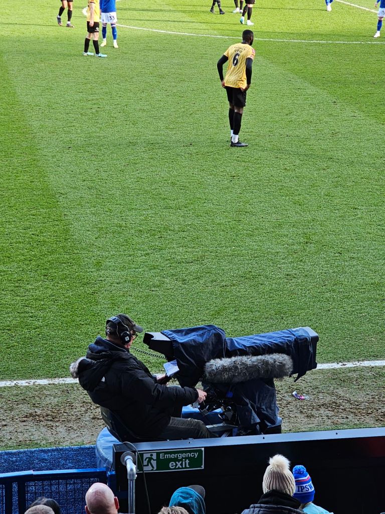 Ipswich are dominating possession and with no more than two minutes played a Nathan Broadhead shot is blocked. It’s the fifth minute and Jeremy Sarmiento shoots on goal and hits a post. “ Hark now hear the Ipswich sing, the Norwich ran away” chant the North Stand raising the spectre of Boney M of Christmas past. A minute later Omari Hutchison runs in on goal from the right; he shoots and the ball is deflected onto a goal post before George Edmundson sends the rebound wide. It’s an exciting start to the match and in a parallel universe somewhere, perhaps one where Boris Johnson was never Prime Minister and beer is still 25p a pint, Town are probably a couple of goals up already.