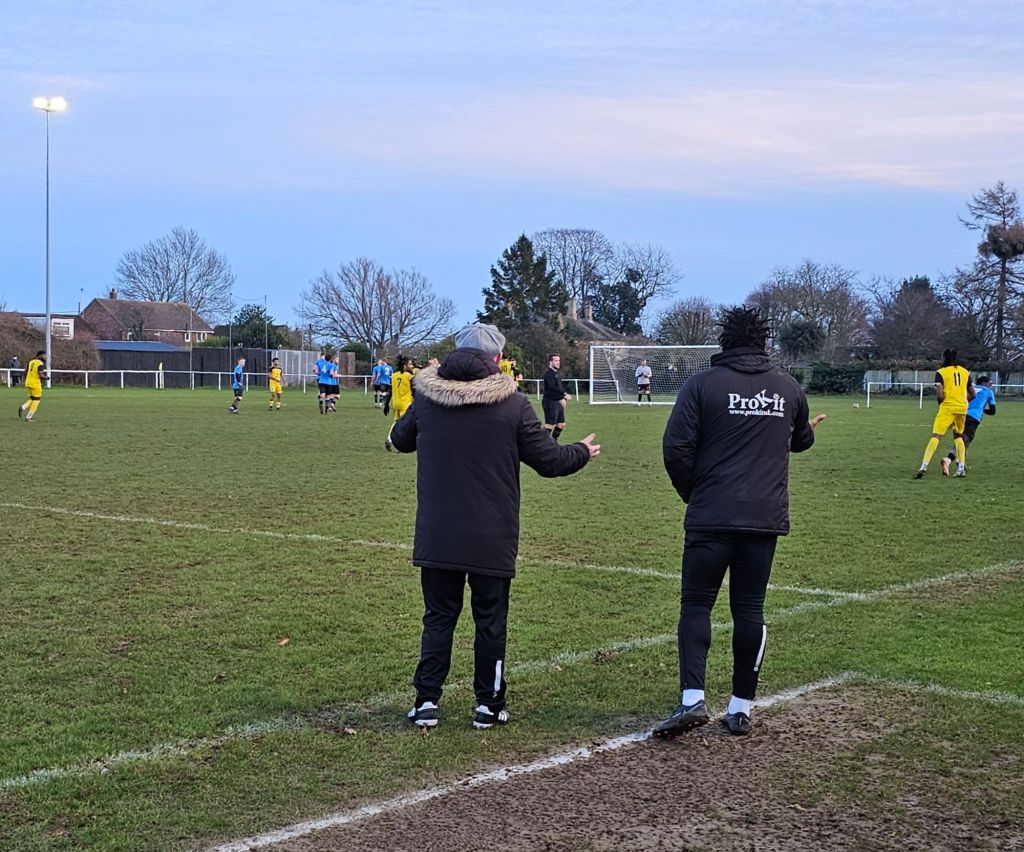 Barking make claims for a penalty as one of their number tumbles between two Oakley defenders and at this point the referee seems to lose any affection the visitors might have once had for him. “You’re a joke ref” calls a man from behind a camera with a tele-photo lens, “Absolute clown ref”. It’s nearly twenty-five past three and all of a sudden Barking take the lead; a clever, arcing cross being headed in at the near post by number six and captain Fahad Nyanja.