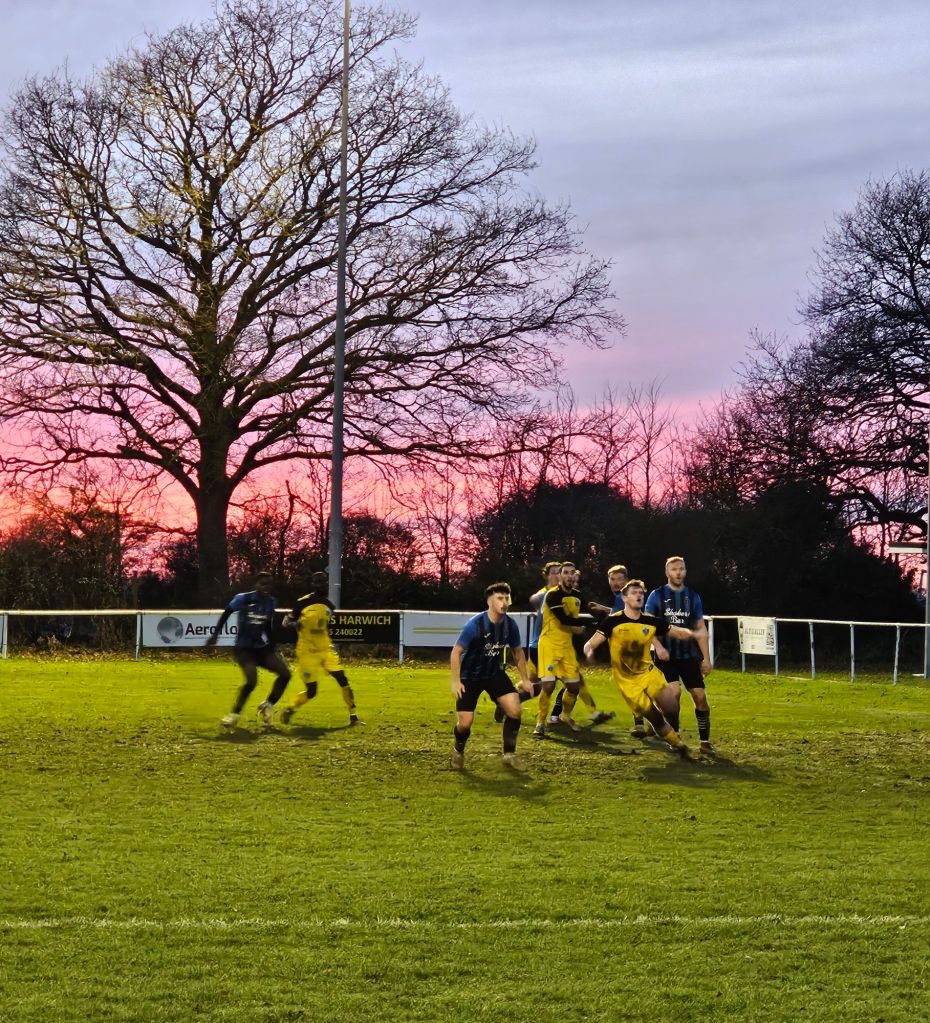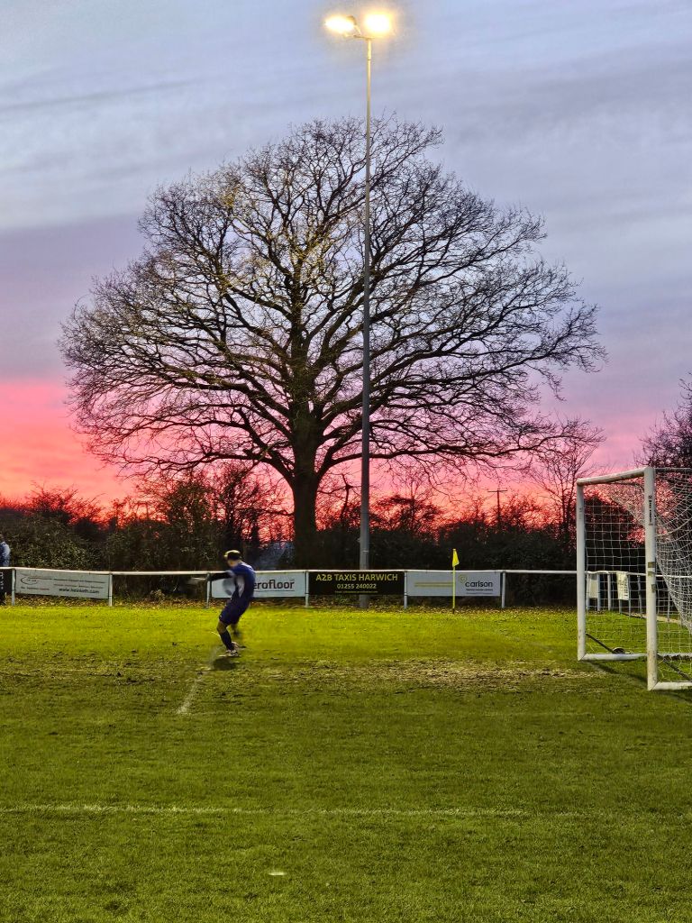 The final whistle blows at eight minutes to five and an appreciative crowd applaud the efforts of both teams in a match which whilst mostly not a thing of beauty, apart from the sunset, has been entertaining and hard fought. I think a draw is a fair result although home fans might not agree, and as I head for my car I hear a man muttering to himself about the ‘village team’ holding the team from the city (Wikipedia tells us that in 2011 Barking had a population of 59,011) as if the moral victory belongs to Little Oakley. Perhaps it does, but even if it doesn’t it’s been a lovely afternoon out.