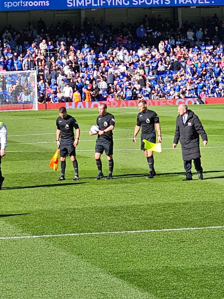 In the aftermath of Davis’s dismissal, Cameron Burgess replaces Jack Clarke and Saka proceeds to miss two decent chances for a goal to loud jeers and boos from Town supporters before I notice that the floodlights are now on and it’s not even a quarter to three yet. I surmise that the lights are on because conspicuous consumption is one of the rules in the Premier League. Five minutes of added on time are added on thanks to the delay when Saka received treatment from the club vet. It allows time for a moment of joy for Town fans and the opportunity to cheer ironically when George Hirst is awarded a free-kick for being fouled. Ironic cheering is one of the skills supporters of ‘little’ teams promoted to the Premier League quickly develop .