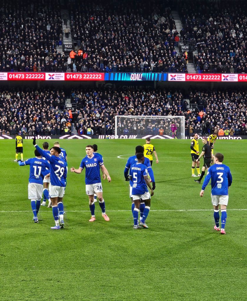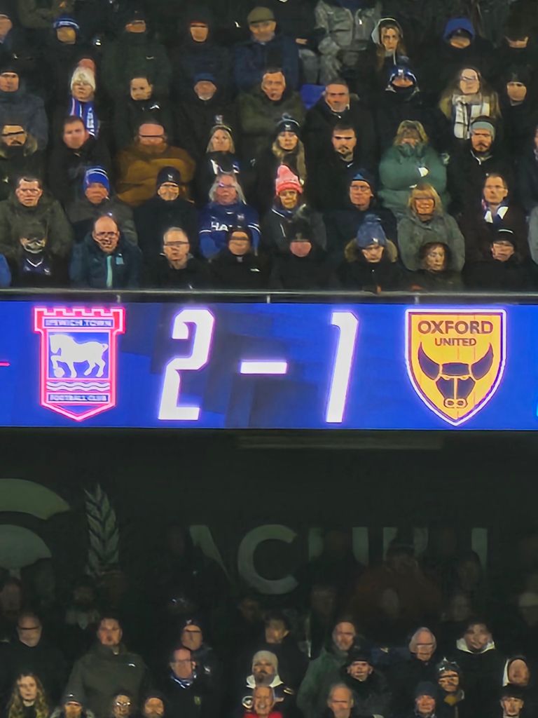 It’s time for substitutions and Eggy and Nunez leave, making way for Wes Burns and Jack Clarke. “Burns, Burns will tear you apart, again” predict the Sir Bobby Robson standers with help from Joy Division. There is another Town corner and we are thanked for our incredible support by the excitable young stadium announcer, who tells us that we number 28,199. Will Vaulks completes the neat list of Oxford names in Mr Finnie’s notebook, yet more substitutions are made and yet another Town corner and even an Oxford corner come and go. At last, another additional three minutes are drawn from the infinite bank of time and then Town are up to second place in the league table because Middlesbrough have lost; vanquished Oxford face the ignominy of being one place below Norwich City who have beaten some Park Rangers belonging to the Queen.