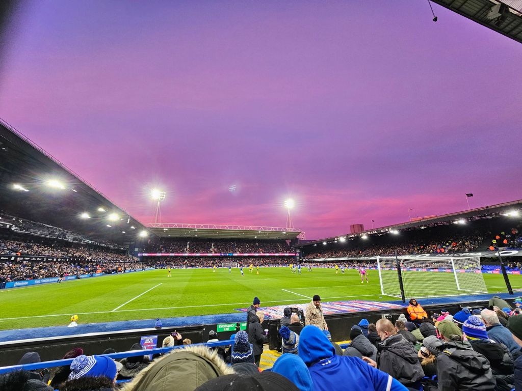 The football resumes at five past four as Portman Road is briefly enveloped in a radiant, pink sky like the backwash to an unexpected mid-afternoon aurora borealis. Two more Town corners ensue and along with Oxford’s Brown, Chuba Akpom’s name is entered, no doubt very neatly into Mr Finnie’s notebook when his ire is stoked by the rough conduct of the Oxford defender. “Hot Sausage Company” read the Sir Bobby Robson stand illuminations. As the violence continues, Helik scythes down Akpom and the home crowd jeer, singing “Who the fuckin’ ‘ell are you” to the tune of “Cwm Rhondda”, boastful of their ignorance of the Polish international defender. Mr Finnie again licks the end of his pencil and re-opens his notebook. “We forgot that you were here” sing the Oxonians, again ironically because judging by the empty seats in the away enclosure many of them genuinely aren’t here, although at £38 a ticket I can’t say I blame them. Whatever happened to ‘twenty’s plenty’?
