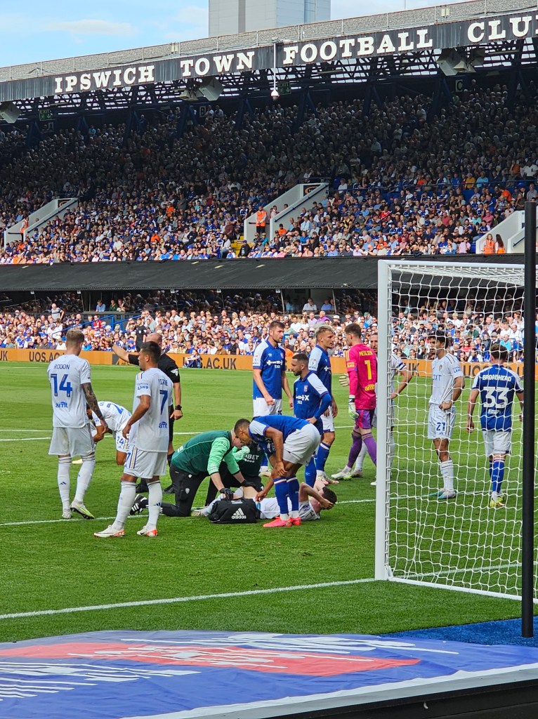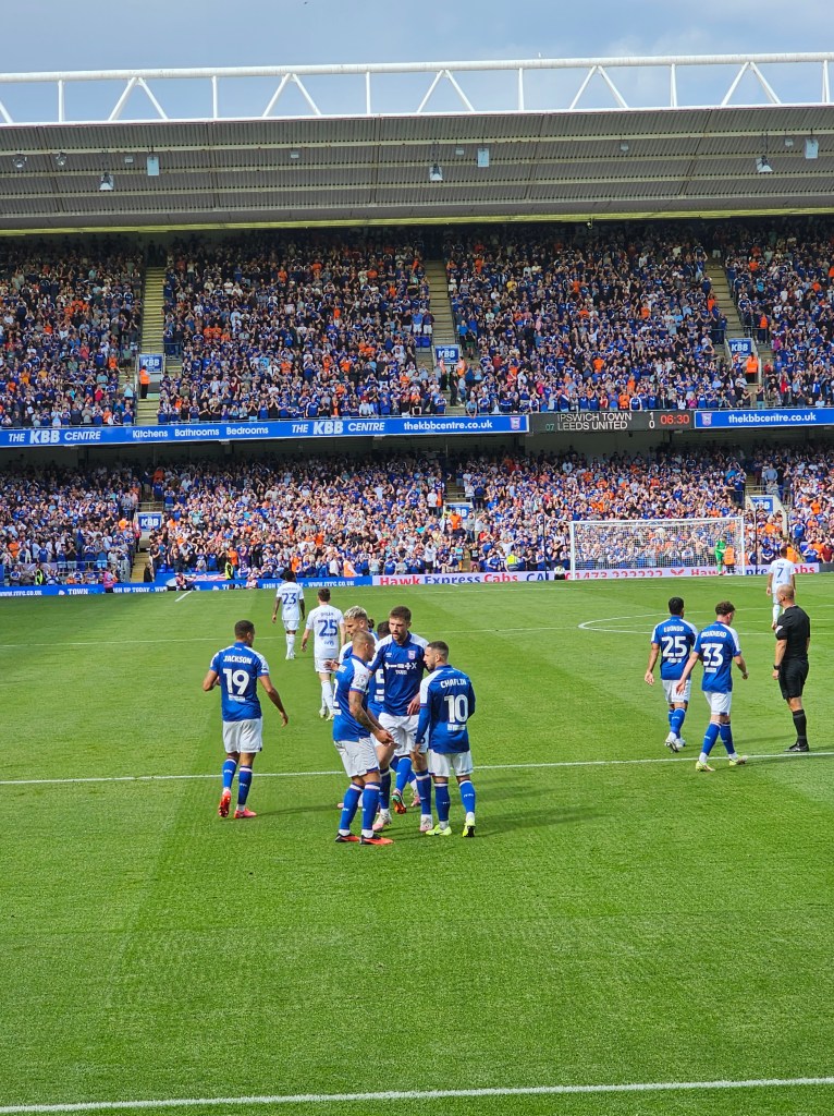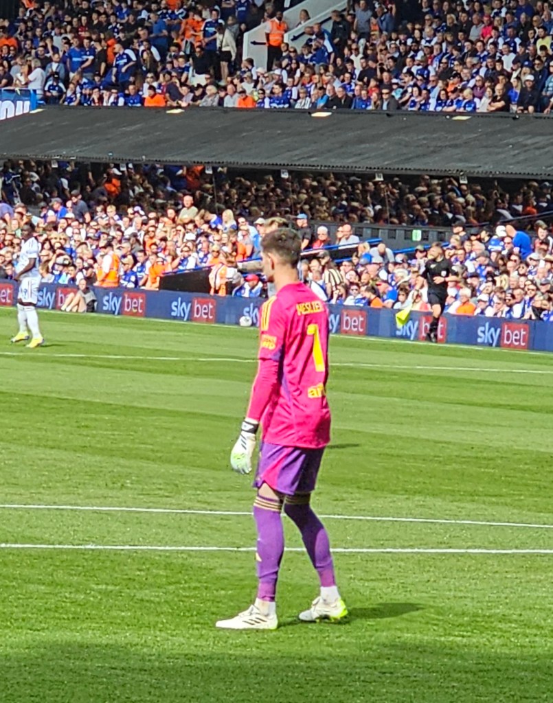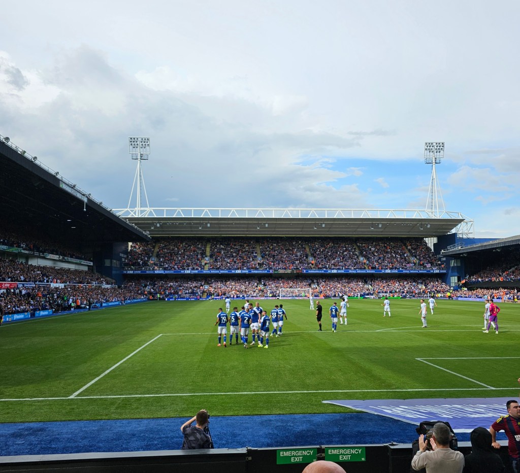 The row of seats in front of us consists mainly of men with grey hair whilst off to our left a younger bearded man looks a bit like Bob Ferris from the 1970’s sitcom The Likely Lads (actor Rodney Bewes). Behind us there is a gathering of men and women in day-glo tabards; if they’re not orchestrating a “gillets jaune” style protest I guess they must be the first aiders and stewards watching the match. At the front of the stand clouds of smoke billow up from teenage vapers and then dissipate into the night air. I notice that Bob Ferris has quite girlish looking hands.
