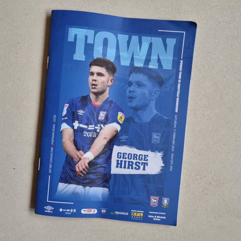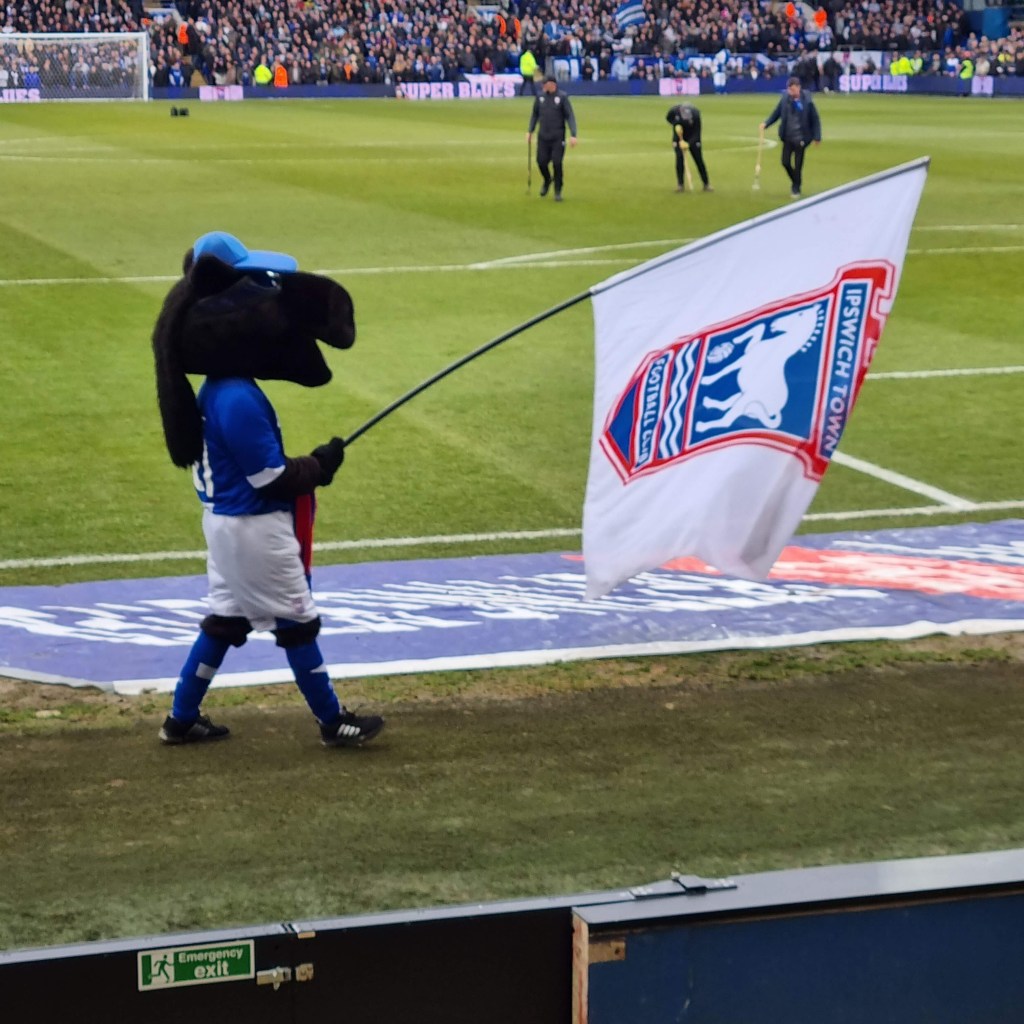 There are eight minutes left of the first half. “What a save!” exclaims the bloke beside me, and a second later so does Adam in the row in front of me, meanwhile Vaclav Hladky has just caught a diving header. Just four minutes until half-time now and there is a prostrate Bristol player thumping his hand on the lush Portman Road turf, using what has become international sign language for “Pay me some attention, I’m hurt, but I’m only putting it on really”. I tell Fiona how last night I saw a David Attenborough programme about animals and sound, and how Kangaroo Rats will thump their feet on the ground to ward off snakes. Fiona hopes there aren’t any snakes on the Portman Road pitch.