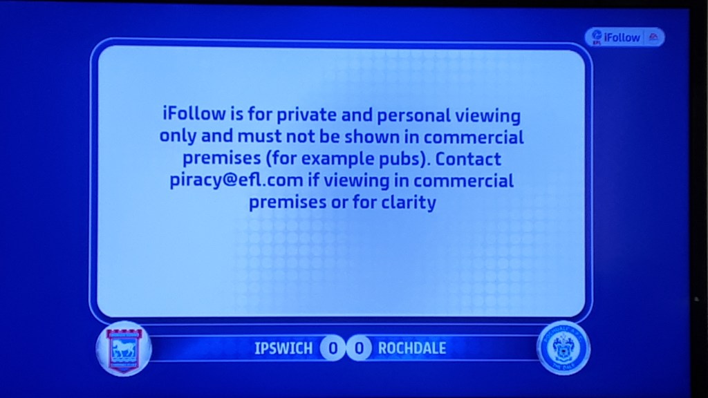 At nine minutes to nine play resumes and having remembered La donna e mobile the Col U fans just can’t get it out of their heads. The match resumes the pattern of the first half, although Town never again produce the sort of chances that Cameron Humphreys so capably fluffed in the first half. Tyreece John-Jules launches a shot into a low orbit and falls over quite a bit. Around me, increasingly frustrated Town supporters try to encourage their team with some clapping that gently peters out, but they can never quite summon the courage to shout and holler, chant or sing.
