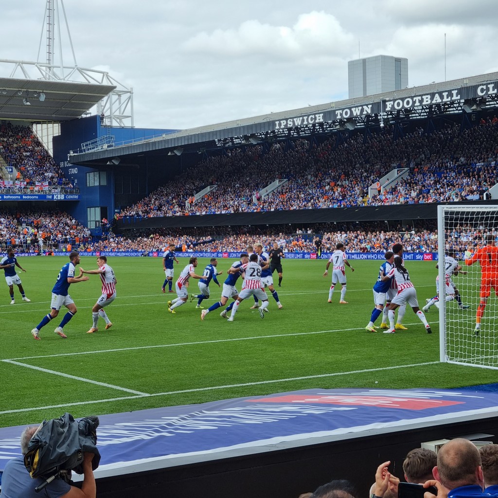 It’s been a grey morning of heavy cloud and humidity, but as I set off for the match the sun is breaking through as if some deity has turned the celestial floodlights on. I’m struck by how few Town fans there are at the railway station today compared with last week for the Leeds game. It’s a somewhat boring journey, with no overheard conversations to intrigue or amuse. Arriving at Ipswich, I have to pause and search for my rail ticket on my phone rather than just pull a piece of card from my wallet, but I master the technology on this occasion and head off up Princes Street for ‘the Arb’. By way of a change, I don’t turn left into Portman Road today, but continue across Civic Drive and up into Museum Street and High Street. I pause only to view the Cobbold Stand across the wasteland and surface car parks where once stood The Sporting Farmer pub, Mann Egerton’s garage and the livestock market. Banners on the lampposts advertising the Cardinal Wolsey exhibition at The Hold remind me of Ipswich’s rich history and heritage. Ipswich is fab, don’t let anyone tell you different.