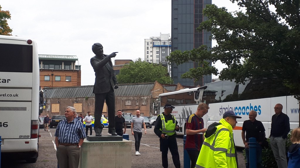 It’s only a quarter to one and Portman Road is still open to motor traffic; I assiduously keep to the pavement because it would be a waste to be mown down by a car now, having dodged death only a few months before and at public expense too. After stopping to buy a programme (£3.50) I continue up the gentle incline, across Handford Road to St Matthews Street, passing a few early-arrivers walking in the opposite direction. I have time on my hands and rather than fall prey too early to the demon drink I walk on past St Jude’s Tavern to Francesco’s Hair Salon at 61 St Matthew’s Street. My long period of convalescence has left me looking like Howard Hughes and I need a haircut, so I get one (£15.50) courtesy of a charming lady hairdresser with whom I chat about going to football, Christmas, family, drinking enough fluids and fruit. Francesco’s is incidentally the same establishment where Bobby Robson would get his hair cut. Although Francesco has moved premises since Sir Bobby’s time, I nevertheless can’t helping feeling I would have had Bobby’s endorsement for this match-day tonsorial, although it is only in my imagination that I see him smiling back at me from the mirror giving me the thumbs-up.