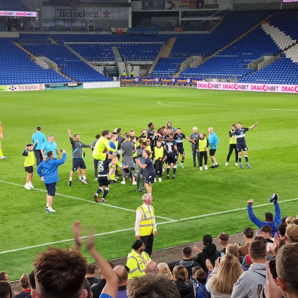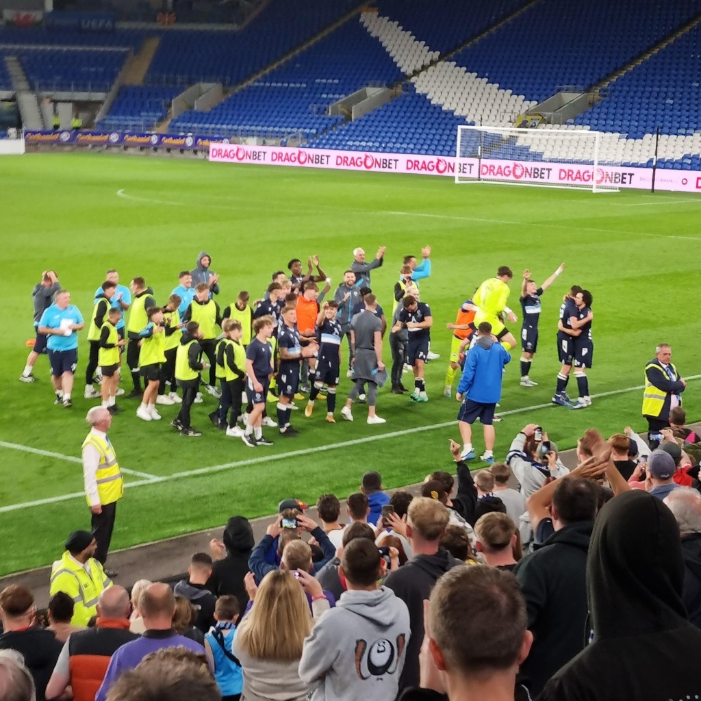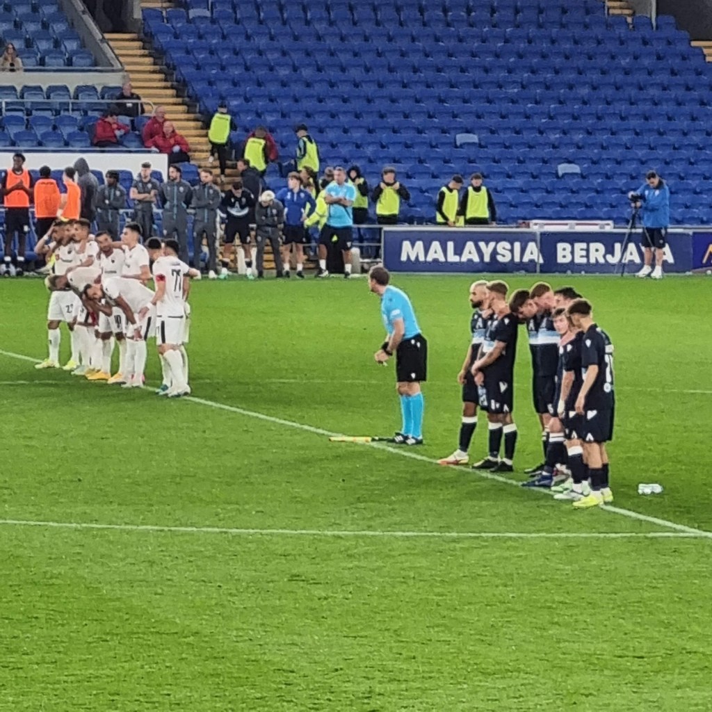 Arriving at the turnstile I’m not surprised to find there is no queue but am delighted to see a small pile of glossy programmes, which I had not expected. I ask if I should pay by cash or card. “Cash if you’ve got it, please” says the turnstile operator “I’ve started to run out”. This is the first time I have paid on the turnstile at a match since I turned sixty-five, and paying in cash adds something to this auspicious occasion as I tender a five pound note for my concessionary entry fee and a two pound coin for the programme.